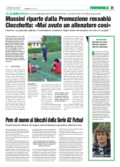 Due pagine interamente dedicate al calcio femminile nel numero di Sprint e Sport in edicola a partire da lunedì 18 luglio. Scenari societari, allenatori pronti a nuove avventure e molto altro ancora. Di seguito tutti gli argomenti del giornali disponibile anche in EDIZIONE DIGITALE
