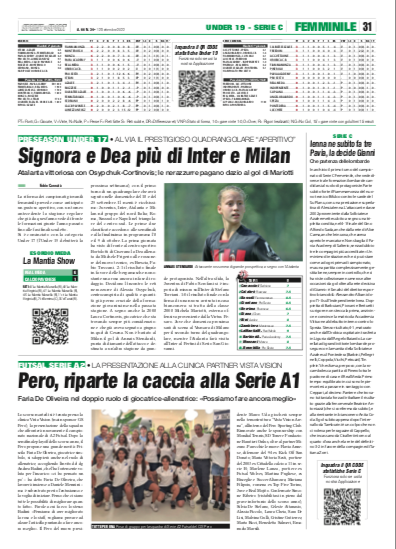 Calcio Femminile sempre più protagonista sulle pagine di Sprint e Sport ora che i campionati stanno iniziando, uno dopo l'altro. Questa settimana a prendere il via è stata la Serie C, ma il clou della nostra copertura rimane l'Eccellenza, categoria che seguiamo in ogni dettaglio. Di seguito tutti gli argomenti trattati nel numero del 12 settembre disponibile in edicola e in EDIZIONE DIGITALE.