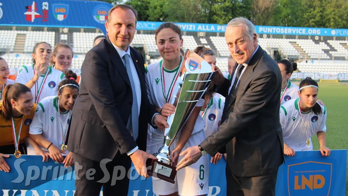 7-0 alla Puglia, 5-0 al Lazio, 2-0 al Piemonte, 5-0 alla Liguria e 2-0 all'Emilia Romagna: 21 gol fatti, nessuno subito e Scudetto in bacheca per le ragazze della Lombardia. Tanta, tanta, ma tanta roba. Un cammino clamoroso, un percorso inarrestabile che si è concluso al Piola di Vercelli nell'unico modo possibile: con la vittoria del titolo che mancava dal 2018. La coppa alzata al cielo da Lisa Citaristi, capitano di questa formazione perfetta e pure mvp della finale con un gol e un assist, è il momento scolpito nella storia della competizione e nella carriera di ogni ragazza della rosa. Il gol di Didi Ivanova nel finale a chiudere i conti è invece l'attimo che fa capire a tutti che ormai è fatta. Dopo quel gol non resta altro da fare se non presentarsi alle premiazioni da Campionesse d'Italia. Gli abbracci, l'esultanza, le medaglie e poi la coppa: nella storia. Per sempre.