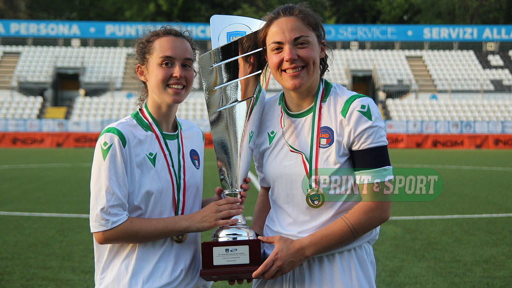 Tre date, tre trofei. Tre storie, tre trame. Tre imprese, tre pianti. La prima data, la prima storia, la prima impresa: 20 aprile 2023, il Monterosso batte il Sedriano e compie l'impresa dell'anno. Si porta a casa il primo trofeo dopo aver stravinto il campionato, la cui trama si può riassumere grazie ai numeri: 27 vittorie, 128 gol fatti e un primo posto - quindi la promozione in Serie C - mai veramente in discussione. Poi i pianti, le lacrime: perché in fondo quanto fatto in sette mesi è straordinario, quasi irripetibile. In campo c'erano loro, Lisa Citaristi e Alessia Frecchiami. La seconda data, la seconda storia, la seconda impresa: 14 maggio 2023, il Monterosso batte ancora il Sedriano e compie un'altra impresa. Mette in bacheca il secondo titolo stagionale e questa volta la trama è pazzesca, come del resto il gol di Parsani su punizione - pure decisivo visto l'esito della finale. Anche qui i pianti, le lacrime: una doppietta clamorosa. Una in attacco e una in difesa, Lisa Citaristi e Alessia Frecchiami c'erano. Eccome se c'erano. La terza data, il terzo trofeo, la terza storia: 18 giugno 2023, il Monterosso strapazza la Tharros e diventa la squadra più forte d'Italia. Firma uno storico triplete e la trama, questa volta splendida, si può riassumere con la location della finale: il campo della Romulea, nel cuore i Roma e a una manciata di chilometri dal Colosseo. Non sono mancati i pianti, così come non sono mancate loro: Lisa Citaristi e Alessia Frecchiami.