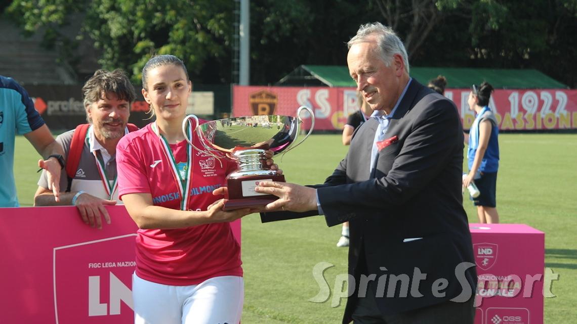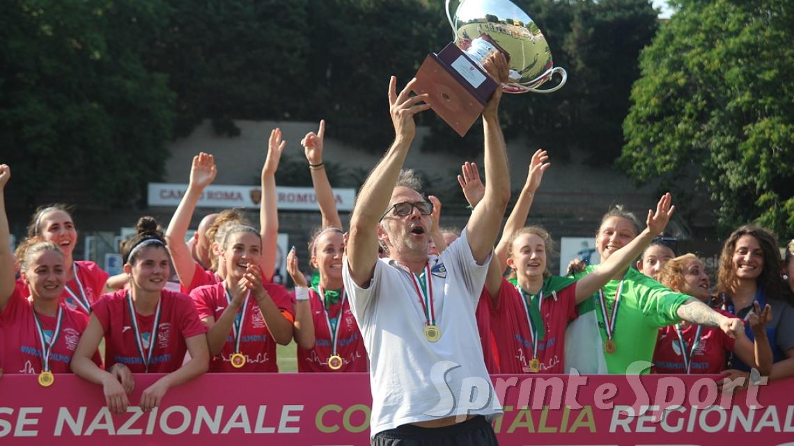 «Il tiro ce l'ho, ci ho provato e ce l'ho fatta». La spiegazione semplice e naturale di Denise, come se avesse fatto la cosa più semplice di questo mondo. Parole chiare, come del resto è chiara la mentalità che ha accompagnato questa squadra quest'anno: «Volevamo vincere a tutti i costi, ci tenevamo troppo a portare a casa il terzo trofeo della stagione. Siamo partite bene e il gol non arrivava ma avevamo fame, abbiamo vinto e siamo contentissime». Ex Nerazzurra e Osio, Alemanni è alla sua seconda stagione con la maglia del Monterosso e in pochi mesi è entrata nel cuore di tutti guadagnandosi pure i gradi per indossare la fascia: «Abbiamo fatto qualcosa di inimmaginabile - le sue parole al termine della finalissima sul campo della Romulea - poi vittoria dopo vittoria ci abbiamo creduto sempre di più: alla fine eravamo in ballo, e abbiamo ballato». Ma qual è, secondo Denise, il segreto di questo Monterosso e di questa stagione trionfale: «La squadra. Siamo unite, un bellissimo gruppo e vincere assieme ci piace da morire».