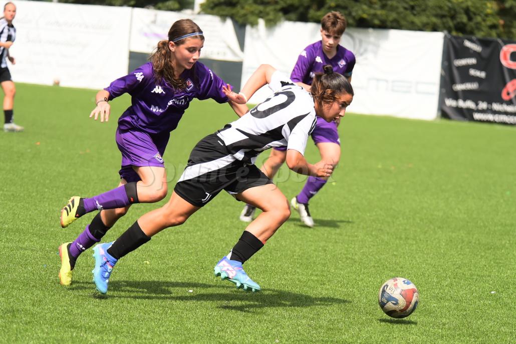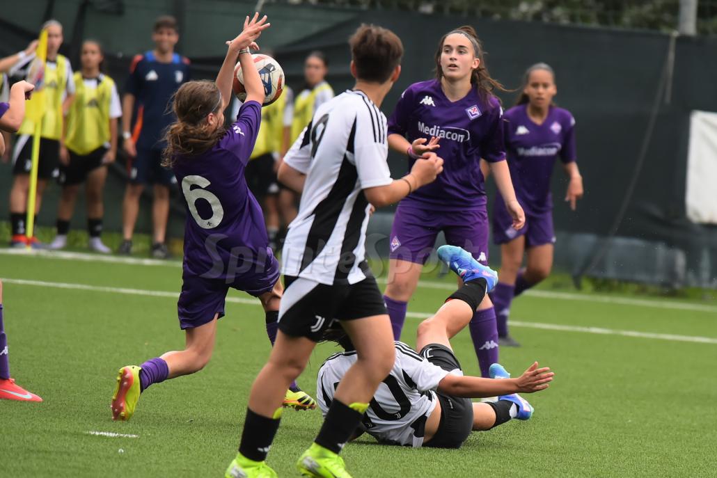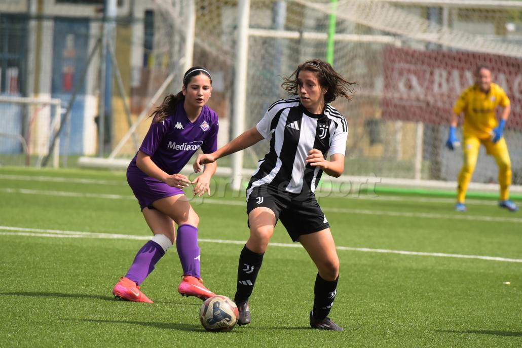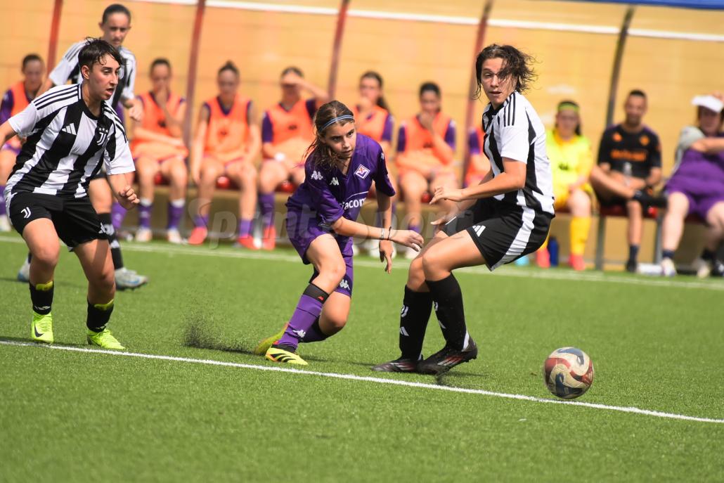 Semifinale Scudetto accesa sul campo rovente di Nichelino, dove la Juventus va sotto di un gol contro la Fiorentina, per un rigore che effettivamente non c'era (fallo fuori area, vedi foto dentro), la riprendono Letizia Colomba e la numero 10 Martina Battocchio con un altro penalty stavolta nettissimo per un tocco evidente di mano (foto dentro). Pareggiano le viole, supportate dal numero e corretto tifo arrivato dalla Toscana, il match point del 3-2 lo segna Sofia Oliva. Ritorno domenica 22 giugno alle 11:00 a Firenze, chi passa va in finale con la vincente di Milan-Sassuolo.