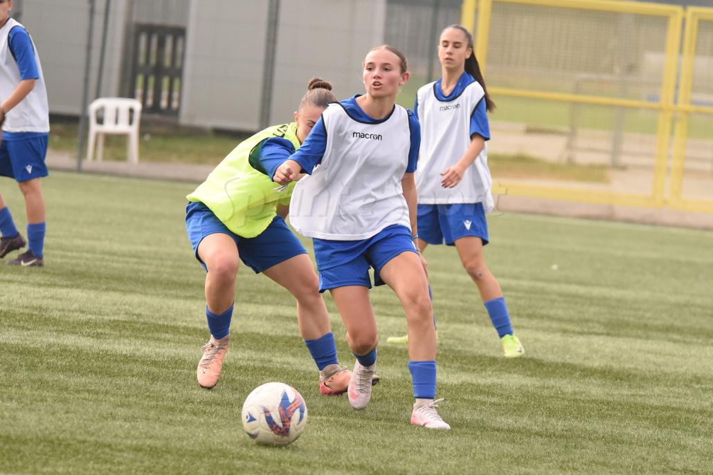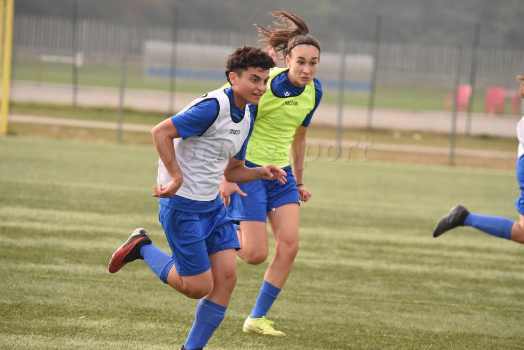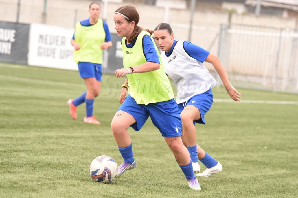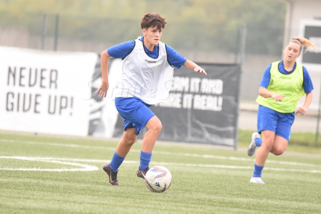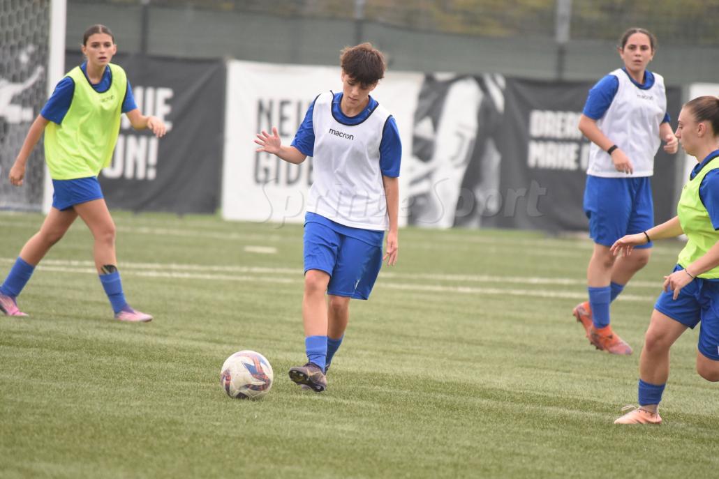 5 gol con 5 attaccanti diverse, 3 legni colpiti e tante buone prestazioni nei reparti di difesa e centrocampo e nel ruolo di portiere dove si sono alternate nei due tempi Elisa Terni, Margherita Vaccarino, Elena Coroama e Alice Roda, unica tra l'altro a fare clean sheet nel test match da 35 minuti a tempo. Molto positivi gli esordi in difesa di Eleonora Gargallo, Sharon Zangrandi, Annalisa Saronni e Celeste Lombardi, mentre a centrocampo hanno brillato in particolare Emma Nota, Martina Armellini, Beatrice Timossi e Federica Esposito. Il primo gol della nuova stagione lo segna la "veterana" Viola Dolza Cogni su assist della sua amica Giulia Rizzolo, che un minuto dopo raddoppia per la squadra con la pettorina gialla saltando in slalom mezza difesa avversaria. Per la squadra in pettorina bianca va a segno Marta Battello, che sta attraversando un momento di forma straordinario, su assist perfetto di Emma Nota. Dall’altra parte traversa piena centrata di testa da Agata Pinton su assist da calcio d’angolo di Martina Armellini. Nel secondo tempo Gianluca Chessa e il suo vice Andrea Bider mischiano un po’ le squadre e mettono in campo chi non aveva giocato la prima frazione. Vanno subito a segno di nuovo le gialle con un gol di rapina di Sophie Careri e poi ancora con un’azione di prepotenza di Gaia Alberto, bravissime entrambe a interpretare i propri ruoli in attacco. Ancora un legno per parte, entrambi di marca Alessandria: traversa clamorosa con un tiro dalla distanza di Celeste Lombardi, avanzata a centrocampo durante la partitella, e sinistro di Giulia Timossi che centra l’incrocio di pali su assist di Giulia Rizzolo. Ottima partita in retroguardia anche per Alice Degani che ha giocato ovunque in difesa, Lisa Amerio e Paola Costamagna.