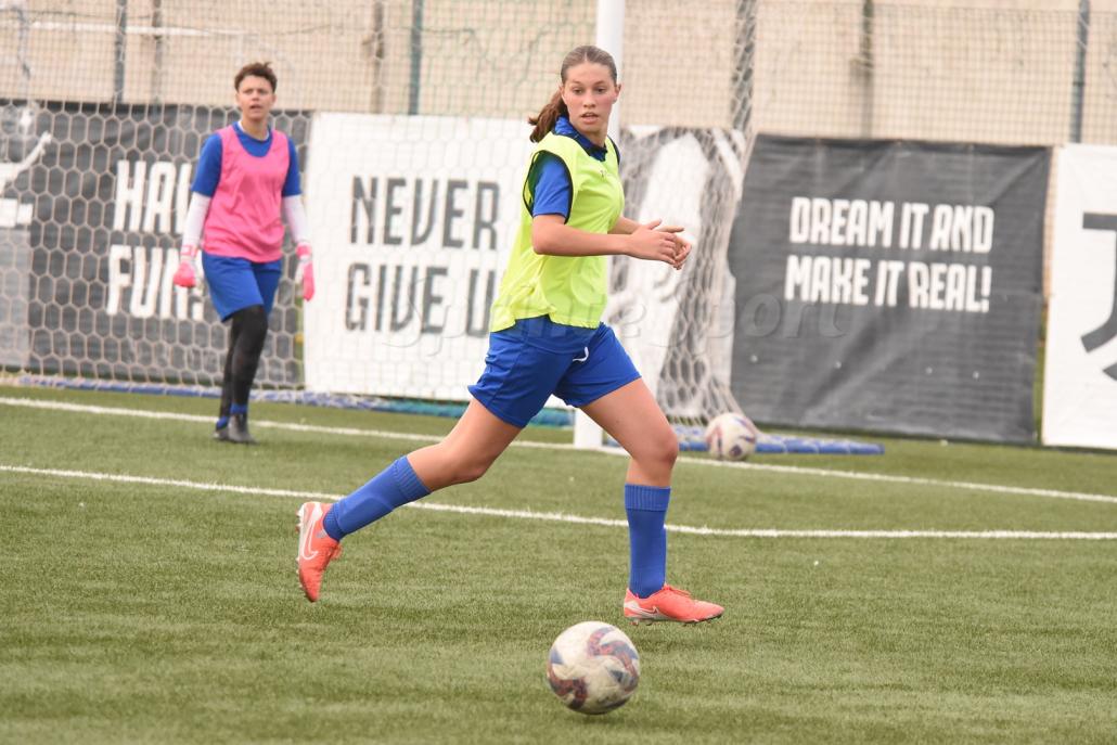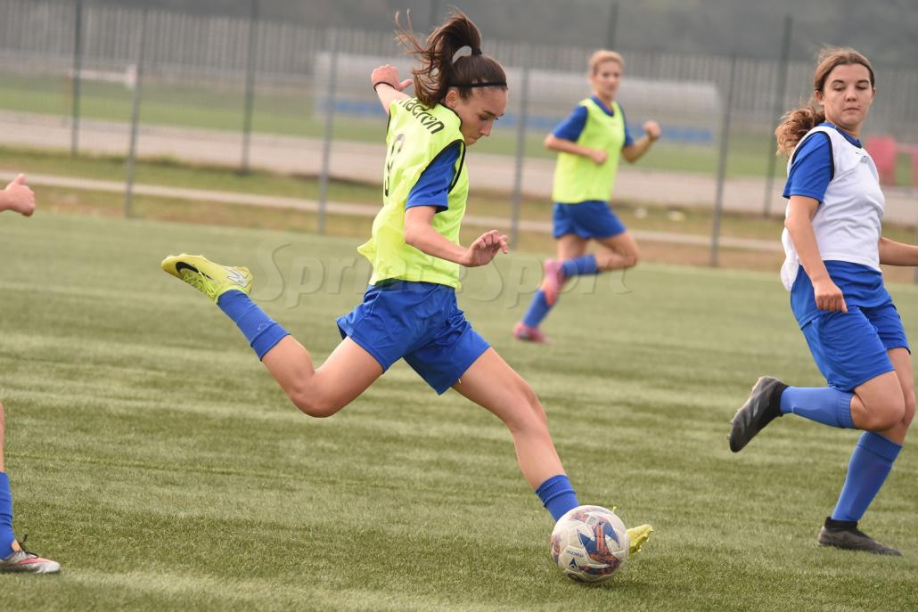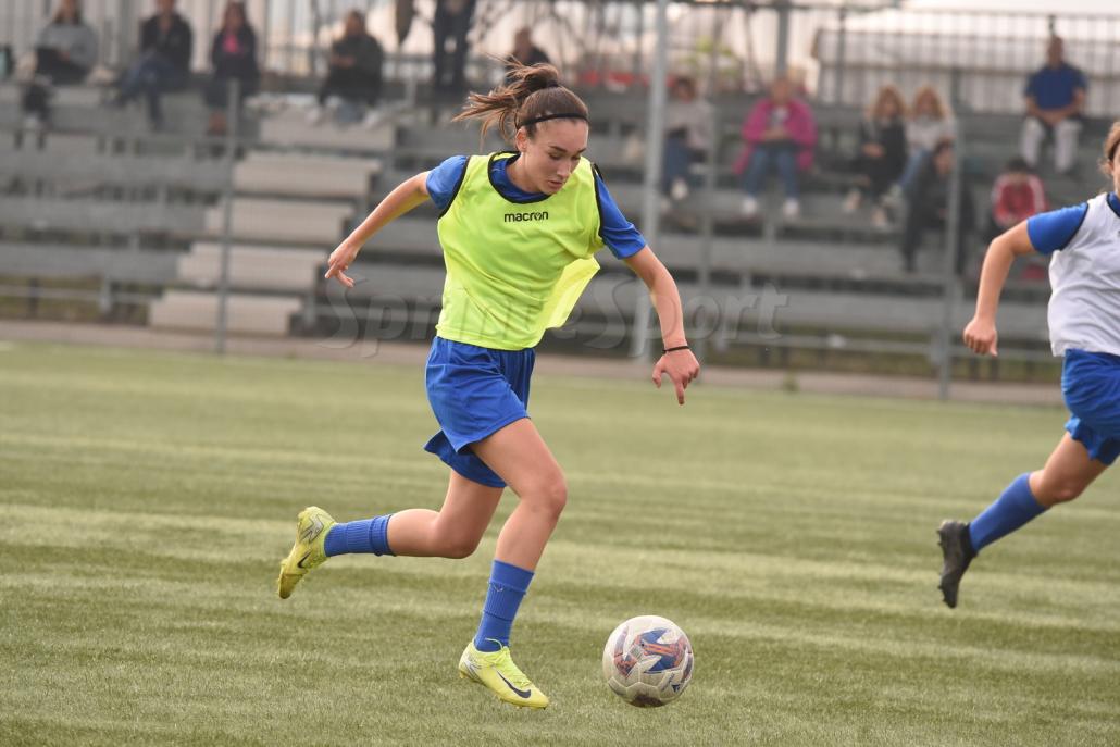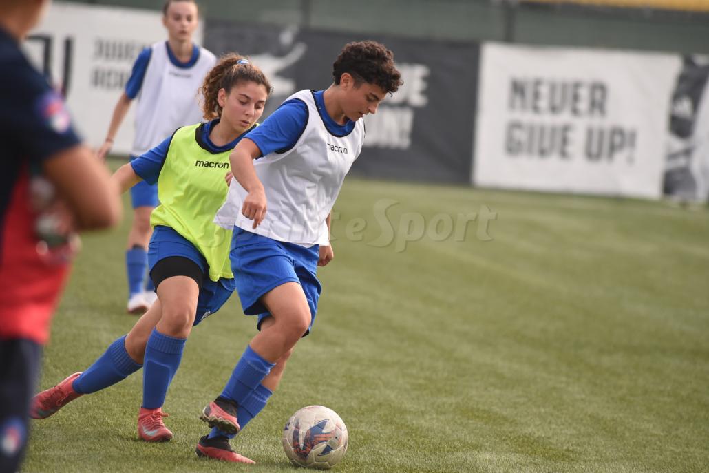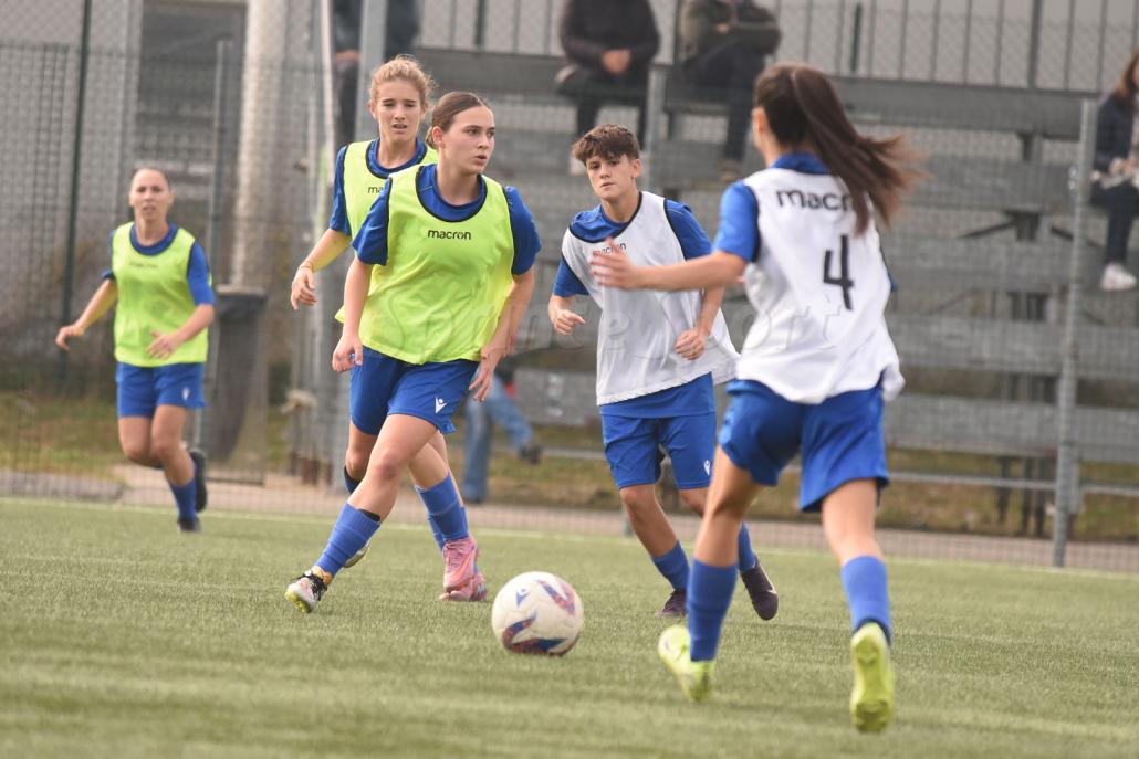 5 gol con 5 attaccanti diverse, 3 legni colpiti e tante buone prestazioni nei reparti di difesa e centrocampo e nel ruolo di portiere dove si sono alternate nei due tempi Elisa Terni, Margherita Vaccarino, Elena Coroama e Alice Roda, unica tra l'altro a fare clean sheet nel test match da 35 minuti a tempo. Molto positivi gli esordi in difesa di Eleonora Gargallo, Sharon Zangrandi, Annalisa Saronni e Celeste Lombardi, mentre a centrocampo hanno brillato in particolare Emma Nota, Martina Armellini, Beatrice Timossi e Federica Esposito. Il primo gol della nuova stagione lo segna la "veterana" Viola Dolza Cogni su assist della sua amica Giulia Rizzolo, che un minuto dopo raddoppia per la squadra con la pettorina gialla saltando in slalom mezza difesa avversaria. Per la squadra in pettorina bianca va a segno Marta Battello, che sta attraversando un momento di forma straordinario, su assist perfetto di Emma Nota. Dall’altra parte traversa piena centrata di testa da Agata Pinton su assist da calcio d’angolo di Martina Armellini. Nel secondo tempo Gianluca Chessa e il suo vice Andrea Bider mischiano un po’ le squadre e mettono in campo chi non aveva giocato la prima frazione. Vanno subito a segno di nuovo le gialle con un gol di rapina di Sophie Careri e poi ancora con un’azione di prepotenza di Gaia Alberto, bravissime entrambe a interpretare i propri ruoli in attacco. Ancora un legno per parte, entrambi di marca Alessandria: traversa clamorosa con un tiro dalla distanza di Celeste Lombardi, avanzata a centrocampo durante la partitella, e sinistro di Giulia Timossi che centra l’incrocio di pali su assist di Giulia Rizzolo. Ottima partita in retroguardia anche per Alice Degani che ha giocato ovunque in difesa, Lisa Amerio e Paola Costamagna.