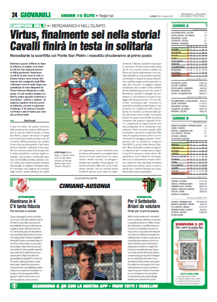 I campionati Regionali sono quasi in dirittura d'arrivo. Sul giornale in edicola da lunedì 14 marzo (acquistabile anche nel nostro store digitale) troverete 24 pagine interamente dedicate: dalle due Élite all'Under 16, passando per l'Under 17, l'Under 15 e l'Under 15. La grande novità è rappresentata dai tabellini: per tutte le categorie tornano con forza sul giornale!