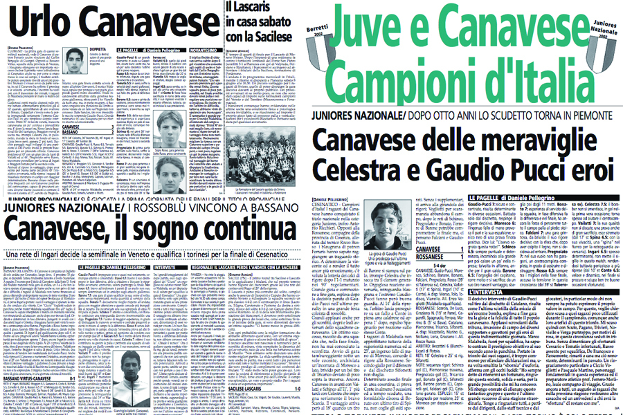 Magie e perle del passato. Chicche e pagine indelebili che riaffiorano sfogliando l'archivio digitale del Piemonte Sportivo e di Sprint e Sport, dal 1960 ad oggi. Come nell'anno 2002, esattamente 20 anni fa. Una stagione da record e da incorniciare per il calcio giovanile piemontese che vinse lo Scudetto con la Juniores Nazionale del Canavese e i Giovanissimi del Chieri di Garella che arrivarono fino alla finale per il Tricolore così come il Lascaris Juniores che sfiorò l'impresa fermandosi alla semifinale contro la Sacilese e i Giovanissimi dell'Orbassano Venaria alle soglie del Tricolore.