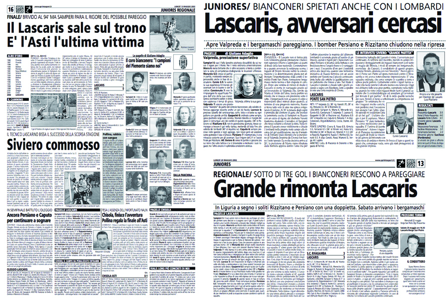 Nei Regionali il titolo Juniores lo vince il Lascaris guidato in panchina da Siviero. Lascaris che aveva vinto il titolo regionale in finale con e dove militavano vere istituzioni come Carotenuto, Rizzitano, Caputo e Persiano e che vola fino alla semifinale nazionale, fermato soltanto dalla Sacilese. Dopo un titolo regionale vinto in finale contro l’Asti.