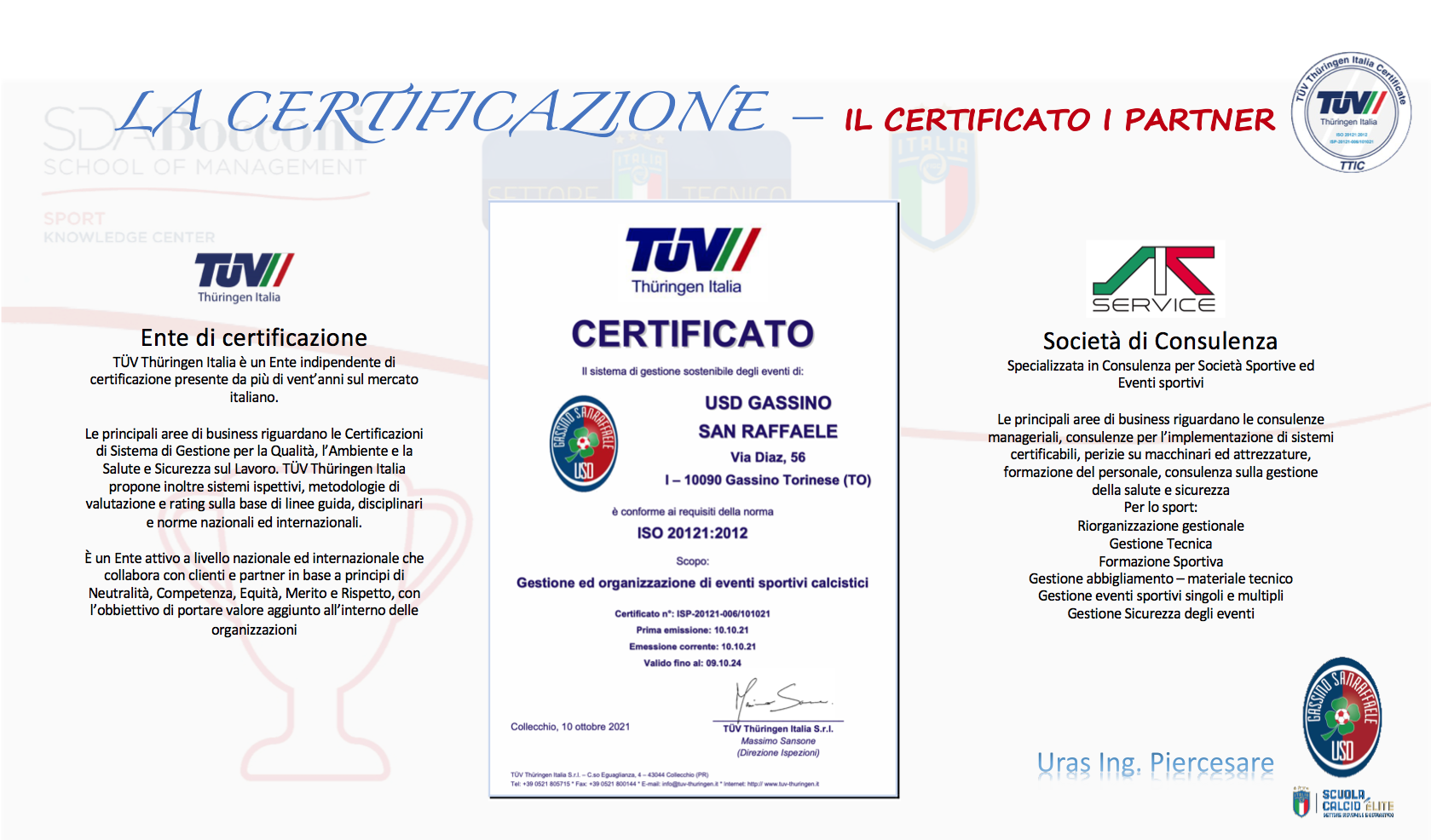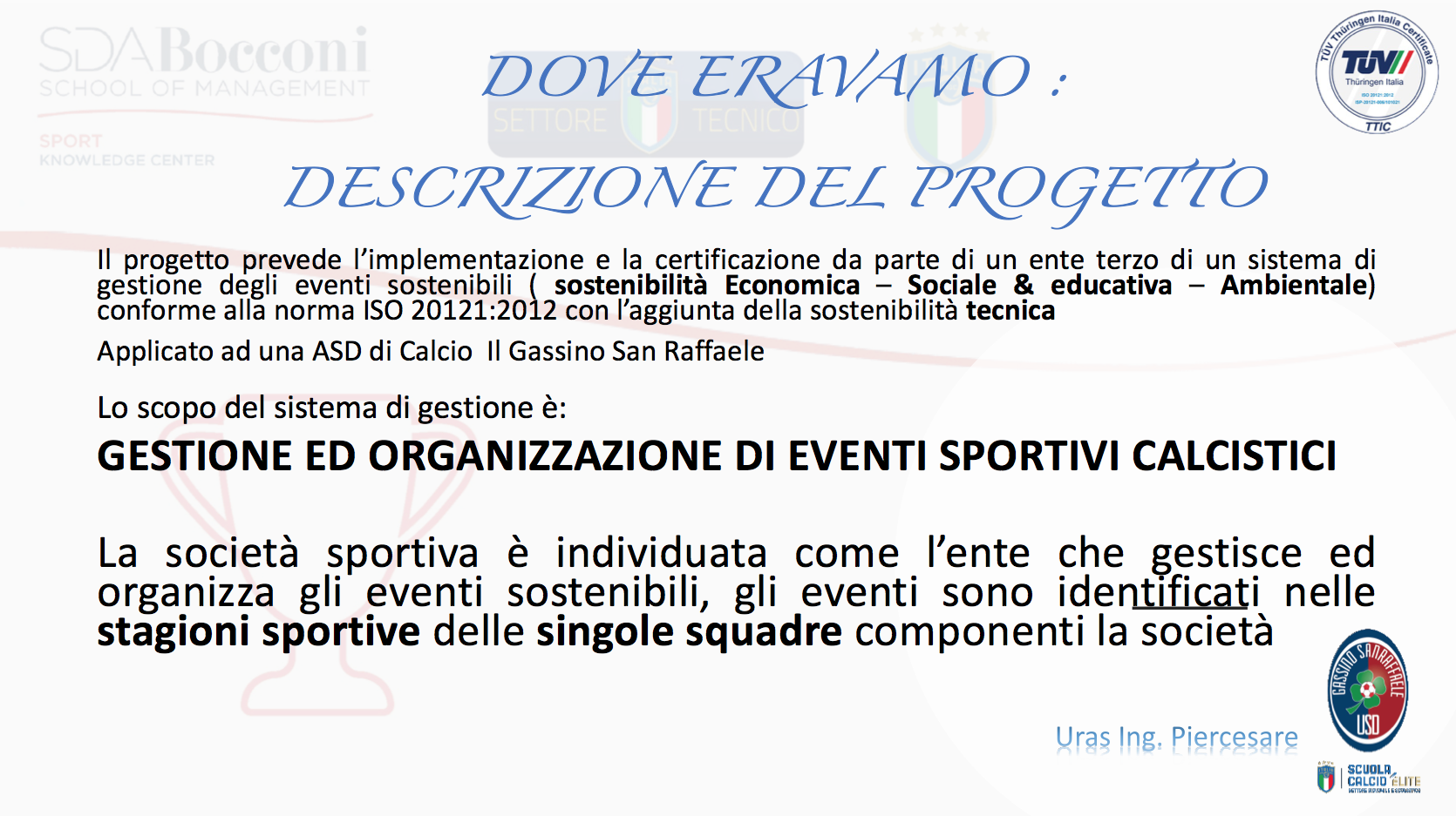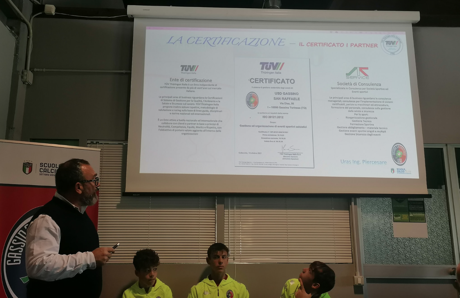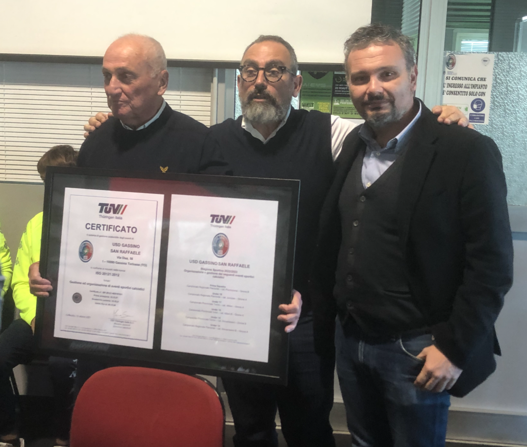 Un sabato mattina davvero speciale per il Gassino San Raffaele ma non solo. E’ stata l’occasione (per alcuni persa, vedi le società invitate a conoscere il progetto ‘sostenibilità’ che hanno cortesemente ringraziato e declinato), per certificare, testimoniare e dimostrare al mondo, calcistico e non solo, che attraverso una società sportiva e attraverso il calcio, si possono realizzare obiettivi e sogni, non solo sportivi e calcistici ma anche etico-sociali, ambientali, economico-finanziari, formativi e scolastici. E non a parole ma sfoggiando la conferma di una certificazione alla sostenibilità e all’autosostenibilità, che rende il Gassino San Raffaele la prima e unica società dilettantistica ad aver ottenuto prima e confermato poi, la certificazione ISO 20121.