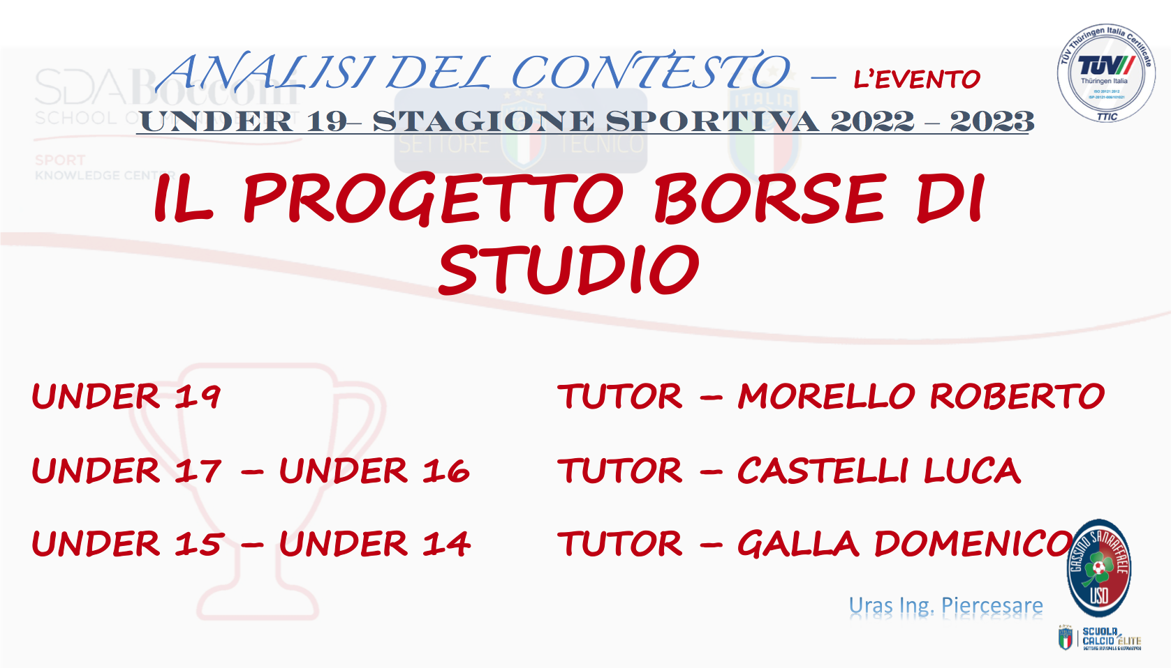 «Il principio di sostenibilità fa fare scelte per il bene della società, sportiva e non solo. Nel nostro caso, noi siamo una società che deve insegnare calcio, non, vincere una Prima categoria o pagare 50 euro in più un giocatore. In quest’ottica, all’interno del progetto sostenibilità per quest’anno, e grazie agli sponsor che ci hanno sostenuto in questa grande iniziativa, il progetto che offrirà una borsa di studio ad un ragazzo di ogni annata - dall’Under 19 all’Under 14 - sulla base dei risultati scolastici, sportivi e comportamentali valutati da un’apposita commissione interna alla società e che prevede, sempre in ogni area decritta un percorso abbinato al rendimento scolastico e sportivo, non inteso come vittorie ma come miglioramento, comportamento e altro. Borsa di studio che coprirà le tasse d’iscrizione e tutte le spese per il materiale necessario oltre alla dotazione di un pc. Un modo per incentivare i ragazzi e fargli capire che è importante la parte sportiva quanto quella scolastica e renderli partecipi del raggiungimento anche di risultati collettivi, di squadra e di società. Come prevede il progetto di sostenibilità e durabilità citato». Con l’augurio che anche altre realtà possano seguirne l’esempio: «Alcuni presidenti di società mi dicono che sono un Don Chisciotte? Io dico che chi dice che non gli interessa non ha capito nulla…».