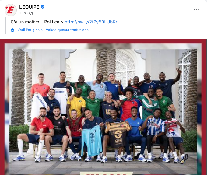 La Francia, ahi noi, dà una lezione a tutto il mondo del calcio. E in particolare a noi ‘italiani brava gente e paese di commissari tecnici e/o fuoriclasse mancati’. Sì, perchè la foto scattata per il giornale sportivo di bandiera, L'Equipe, da tutti i componenti della nazionale transalpina, protagonista al mondiale in Qatar, con gli etichettati milionari ‘presuntuosi’ che sfoggiano ognuno una maglia. La notizia, la storia e la 'lezione' però sta tutta in quelle maglie. Che non sono dello sponsor, della nazionale o del proprio club professionistico ma, bensì, ma sono del loro primo club dilettantistico dove hanno mosso i primi passi. Ben prima di diventare quello che sono oggi. Ed è in quella foto il motivo e il significato del successo del movimento calcistico francese. Al mondiale del Qatar 2022 e non solo.