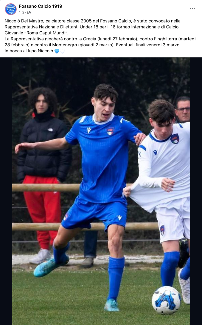 Il post Facebook del Fossano per l'orgoglio di casa Del Mastro