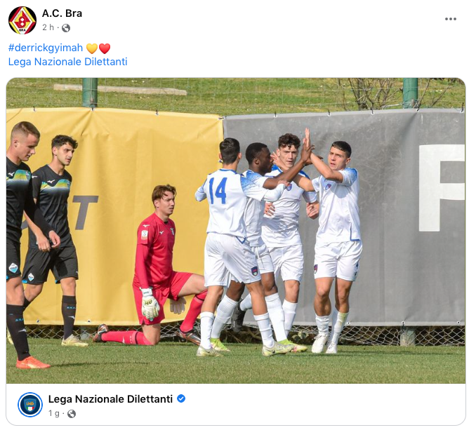 Il post Facebook del Bra per Derrick Gyimah