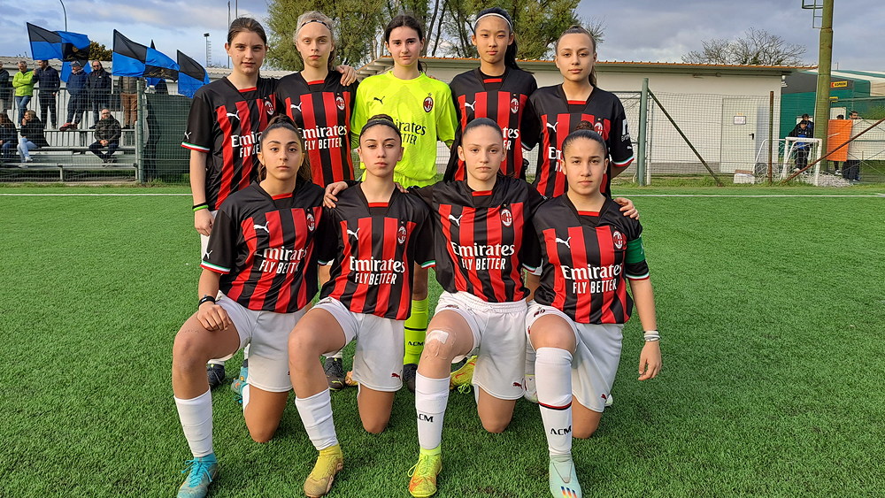Con il passare dei minuti emergono alcune differenze importanti tra le due formazioni: la prima riguarda le rispettive mediane, con il binomio Hu-Galluzzi (quest’ultima classe 2009) in grado di dare quel boost di qualità utile in questi palcoscenici; il secondo punta i fari sul duello tra Dell’Orto e Spagliardi, con la laterale rossonera che riesce più efficacemente a dare ampiezza e a sfornare cross. Le giocatrici rossonere continuano a macinare gioco, sia in forma individuale (vedi serpentina di Tomaselli, con tacco susseguente) sia con l’esecuzione degli schemi provati in allenamento (vedi corner corto e tiro alto di Galluzzi). Matteo Zago rimane comunque sempre molto serafico, mentre in campo è capitan Casiraghi a cercare di rinvigorire le compagne. Il Milan riesce a tenere sempre alto il livello dell’intensità, costringendo le rivali cittadine a soluzioni complicate che generano palle perse. Occasione colossale per le rossonere allo scoccare del gong: Galluzzi lavora magnificamente il pallone e scarica per l’accorrente Di Falco, mancino a botta sicura che trova la sagoma di Casiraghi a portiere quasi sicuramente battuto.