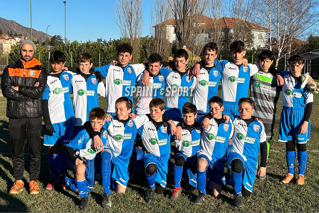 Under 14 Provinciali, Aviglianese-Alta Valle Susa 2-0: l'esultanza a fine partita dei 2010 biancazzurri