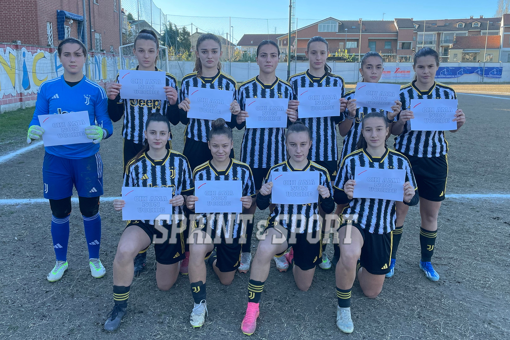 In occasione della partita di oggi sabato 25 Novembre "Giornata internazionale contro la violenza sulle donne" tra NH10042 e Juventus c'è stata una bella iniziativa della società di Nichelino che durante la foto di squadra si è presentata con un foglio con su scritto "CHI AMA NON UCCIDE" e con la "Carta Europea dei diritti delle donne nello sport", oltre che essere scesa in campo con un segno rosso sul viso come anche il direttore di gara.