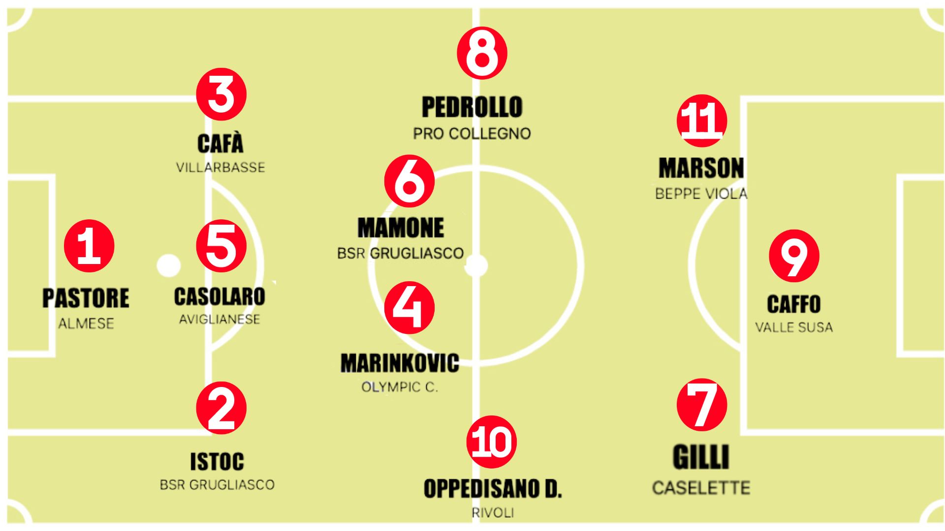 Mezzala o fantasista, non può non essere in top 11 Rayan Mamone. Un numero 10 puro, arrivato ad inizio stagione al Bsr Grugliasco, che si è già fatto notare per le su abilità palla al piede. Uno dei più tecnici del girone, tratta la palla con una facilità che fa sembrare semplici anche cose che non lo sono. In più segna e fa segnare, dando vivacità alla manovra di Carattini ed ergendosi a perno fondamentale di un gioco caratterizzato dal giro palla. Famoso per le sue progressioni palla al piede che spaccano la difesa avversaria.
