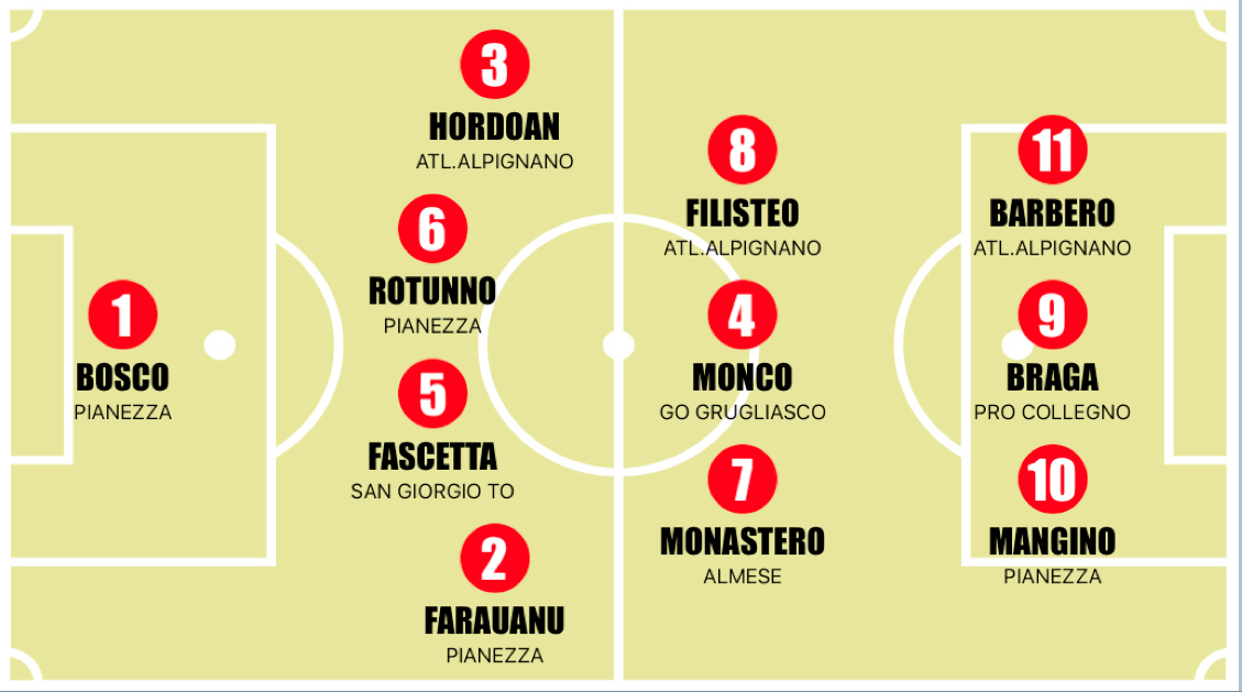 Mantene la porta inviolata è sempre un vanto per un portiere, farlo per ben 8 volte su 11 diventa uno statement a tutte le squadre del girone. Per battere questo infallibile Pianezza bisogna, prima di tutto, provare a fare gol al suo portierone. Molto abile tra i pali, si è sempre fatto trovare pronto quando serve con interventi che trasmettono enorme sicurezza alla sua squadra e la sua media voto di 6.8 lo certifica. Sono solo 5 i gol subiti dall'estremo difensore rossoblù in 11 gare e immaginiamo che vorrà provare a rimanere sotto la doppia cifra alla fine del girone di ritorno.