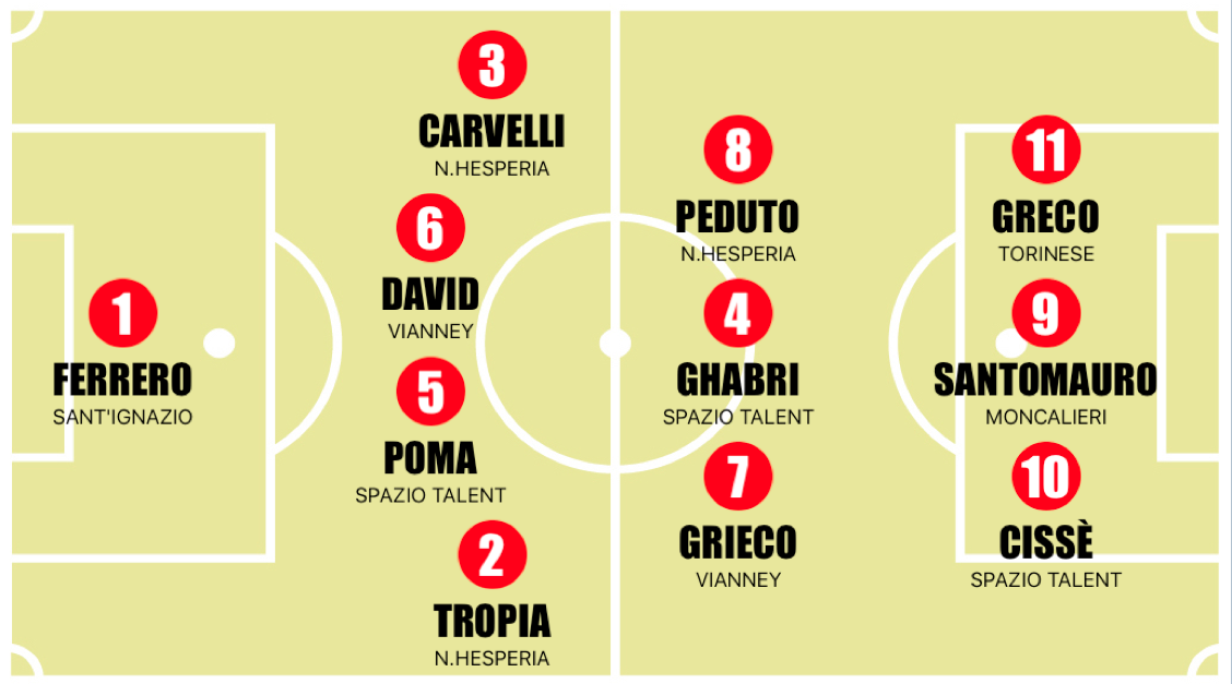 Una prima parte di stagione elettrizzante, colpi di scena ad ogni giornata e diverse squadre in lizza per un posto ai play off. È questa la situazione dell’entusiasmante girone B dell’Under 17 di Torino, in cui la lotta per il titolo sembra sia un affare a due tra Nichelino Hesperia e Spazio Talent, mentre per l’ultimo gradino del podio la classifica vede ben 8 squadre in soli sei punti. Nulla però è ancora finito, le sorprese sono sempre dietro l’angolo. Per quanto riguarda invece la top 11, ecco i migliori di questa prima parte di stagione, ruolo per ruolo.