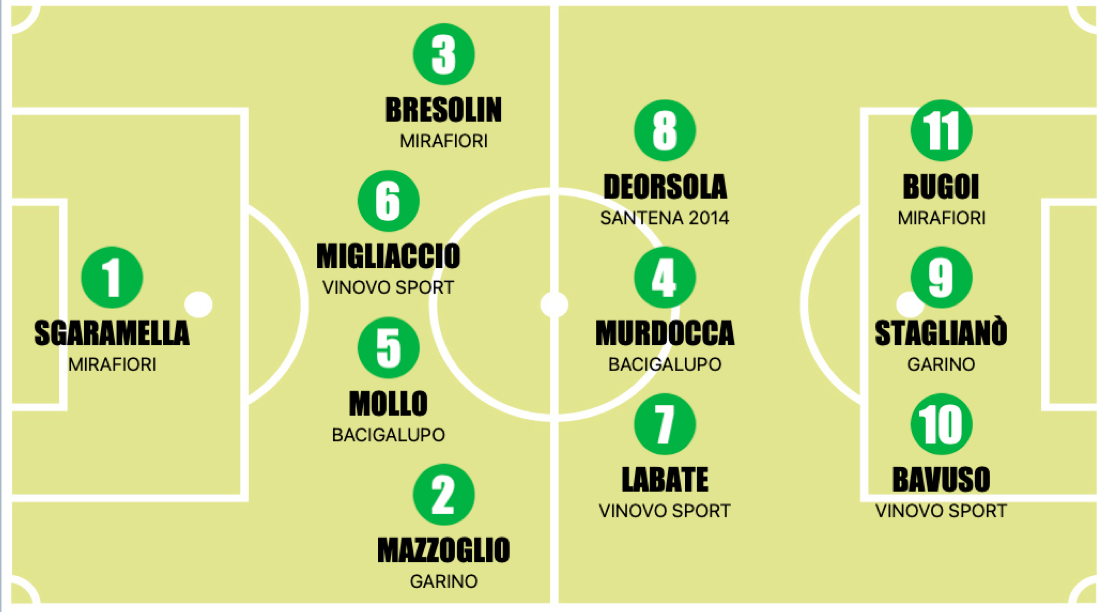 La vera sorpresa di questo girone D è il centrocampista Riccardo Deorsola che segna come una punta, sei gol e due doppiette in sette partite che trascinano il Santena al quinto posto della classifica grazie al suo miglior realizzatore che naturalmente detiene anche la miglior media voto di squadra con un punteggio di 7.1.