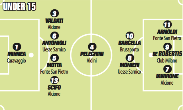 Lorenzo Barcella Il dieci di oggi della Rapp non fa mancare la qualità degna del numero che porta sulle spalle: l'attaccante del Brusaporto si fa cercare dai compagni e quando viene trovato prova sempre l'immediato lancio per De Robertis, spesso vittima della gabbia della Masseroni. Condisce la sua partita con fisicità e visione di gioco che in certi momenti fanno dimenticare che sia un anno più giovane degli avversari.