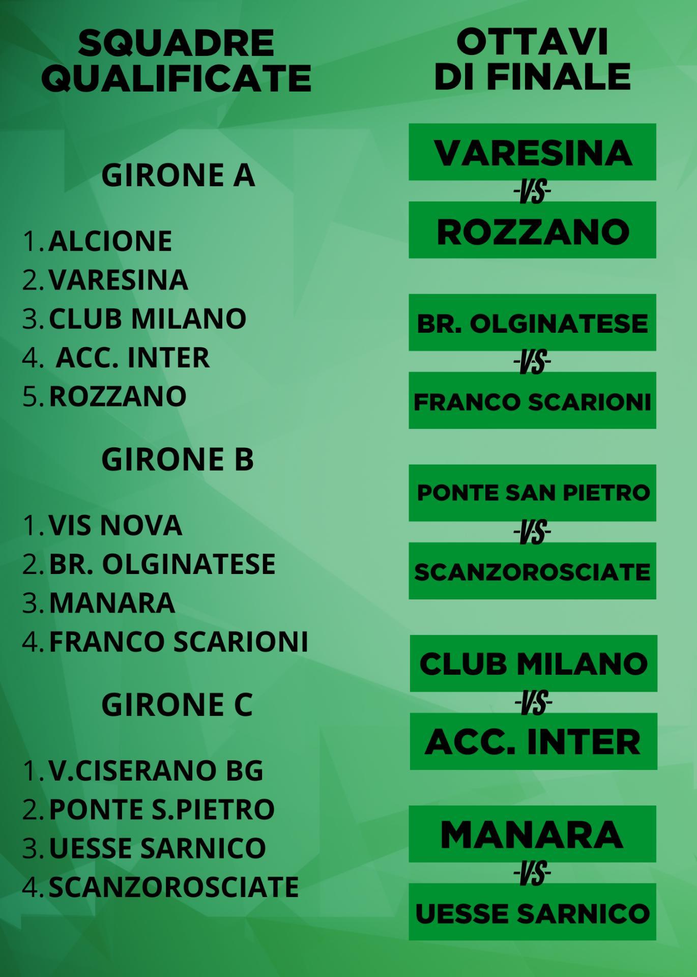 Quando anche tutti quanti gli ottavi si saranno disputati, entreranno in gioco le teste di serie, ossia le vincitrici dei tre gironi d'Élite: Alcione, Virtus Ciserano Bergamo e Vis Nova. Gli abbinamenti saranno i seguenti: