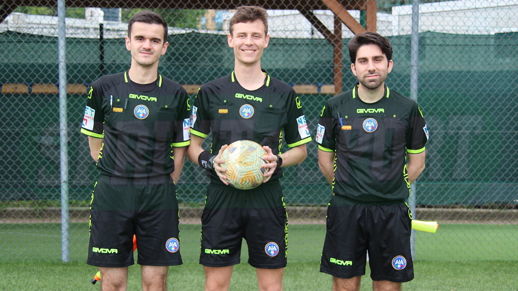 La terna arbitrale: Tosi di Busto Arsizio al centro, Danciu di Lodi a sinistra e Giordano di Lodi a destra