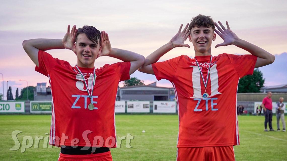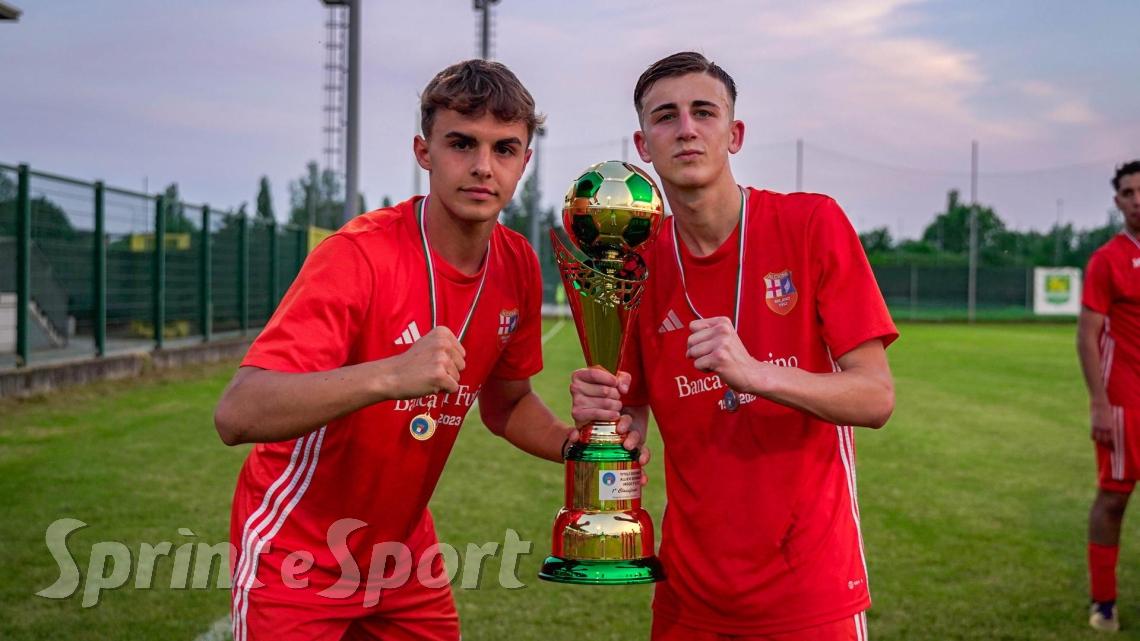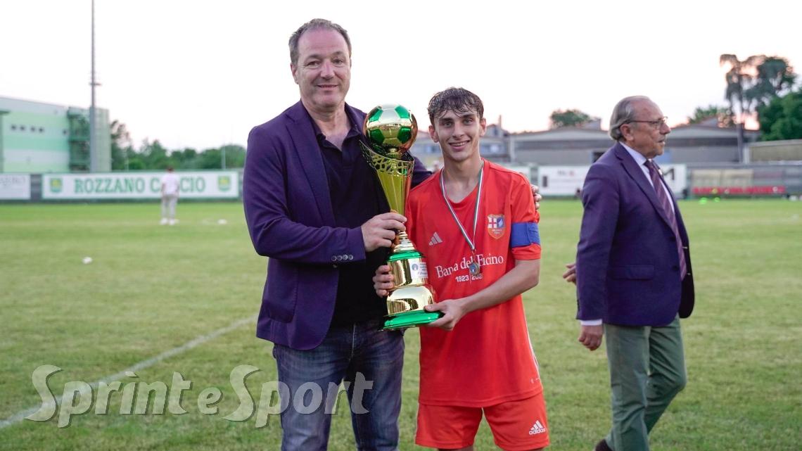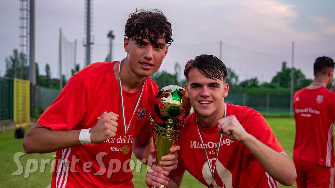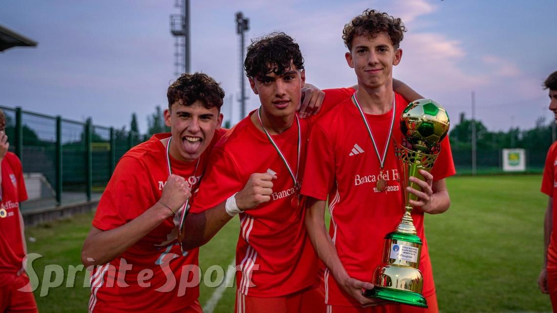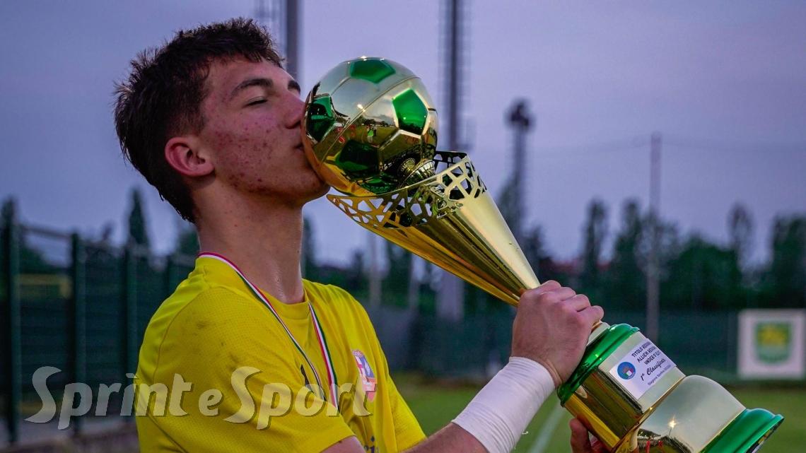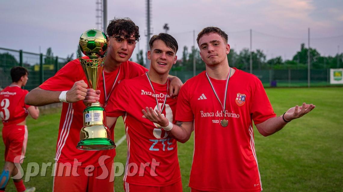 Un trionfo, milioni di storie. La più bella sta tutta in un’immagine, un’istantanea che andrebbe presa, stampata e conservata. Patrimonio dell’umanità, parola del Dio del calcio. In primo piano c’è Tommaso Frigerio, capitano di mille battaglie. Niente parrucca (chi se la dimentica quella foto?) e niente cerotti (l’infortunio è ormai acqua passata), solamente lui. Lui e il suo sguardo, intenso. Lui e quel sorriso, splendido. Lui e quella coppa, la più bella. Poco dietro tutti gli altri, da chi c’era e sa (tanti) fino a chi non c’era e non sa (altrettanti). O meglio, non sapeva. «Il gruppo è pazzesco, ci hanno trasmetto una mentalità vincente». Parola di Villa Santa, parola di chi non c’era e adesso sa. Dalle 20:37 circa, da quando Tommaso Frigerio ha fatto ciò che gli viene meglio. Con il suo sguardo intenso, con il suo sorriso splendido, con la coppa più bella. L’ha alzata come piace a lui, puntando talmente in alto fino a superare la quota di crociera degli aerei. Semplicemente ai confini dell’atmosfera. E quasi non gli scappava di mano… Leggenda narra che mancassero giusto un paio di centimetri per toccare il paradiso, questione di dettagli. Non che sarebbe stato un problema, anzi. San Pietro sapeva che prima e poi avrebbero bussato alle sue porte. I classe 2007 dell’Alcione, i classe 2007 più vincenti d’Italia, i classe 2007 che continuano a strizzare l’occhio alla storia. La loro l’hanno ancora riscritta, stravolta. Ancora, ancora e ancora. Tre volte, il numero perfetto. Tre volte, il numero perfetto per la squadra perfetta. Tre volte, il numero perfetto per la squadra perfetta che l’ha rifatto.