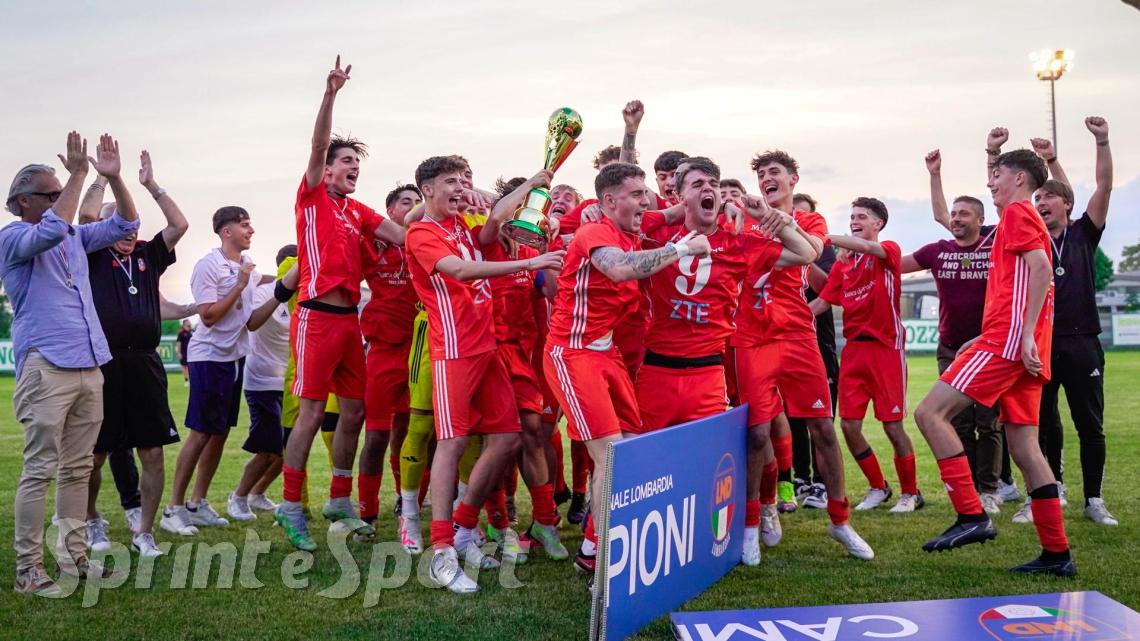 In una finale da pelle d’oca, dominata per un’ora abbondante ma finita con il brivido. Tutto in sei minuti, tutto in un recupero che sembrava non finire mai. La parola fine l’ha messa la corsa di Gabriele Brambilla, quello dal fisico da pugile e pieno zeppo di tatuaggi. Dalla tribuna lo definiscono un gol alla Inzaghi e probabilmente non esiste riassunto migliore. Poi la corsa pazza sotto la tribuna, condita da un urlo come a dire «stop, fine del gioco». E poco prima il delirio, dalla traversa di Guastone al rigore chiesto (ma non concesso) dalla Varesina. Tonella fa il Tonella (il fuoriclasse), Guastone fa quello che non è (il difensore) e lo atterra in area. Airaghi è lì, addirittura si piega leggermente in avanti per vedere meglio ma niente, tutto regolare. «L’episodio ha chiaramente condizionato la partita, dispiace perdere così» il commento di Matteo Frontini, allenatore rossoblù. E poi artefice di un (mezzo) miracolo, condottiero di una squadra che nonostante tutto, nel suo piccolo, rimarrà comunque nella storia. «I ragazzi hanno già scritto un pezzo di storia» aveva dichiarato dopo la semifinale contro l’Ausonia. È così.