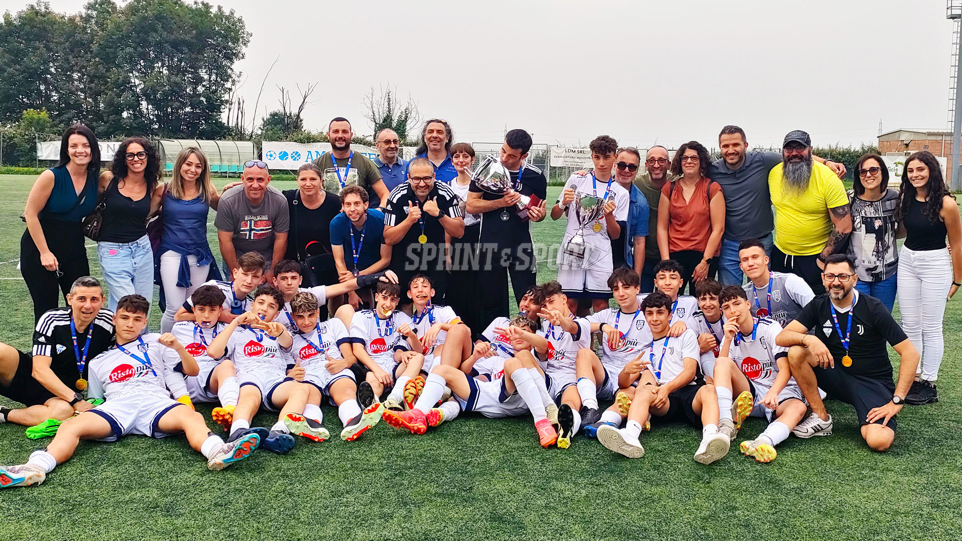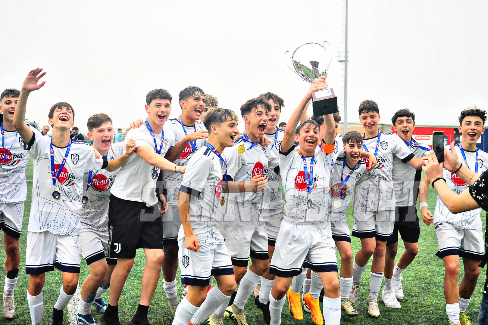 Under 14 Finale Titolo Provinciale di Torino: Atletico Alpignano-Vinovo Sport Event 2-5: il capitano Riccardo Labate alza la Coppa (foto Cassarà)