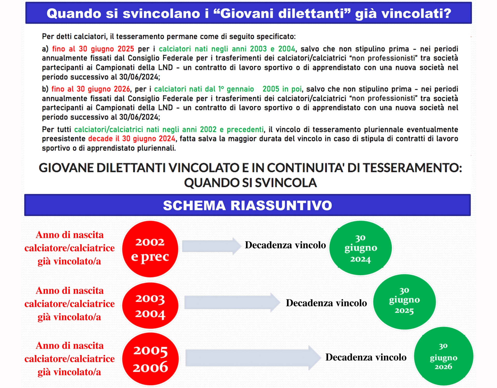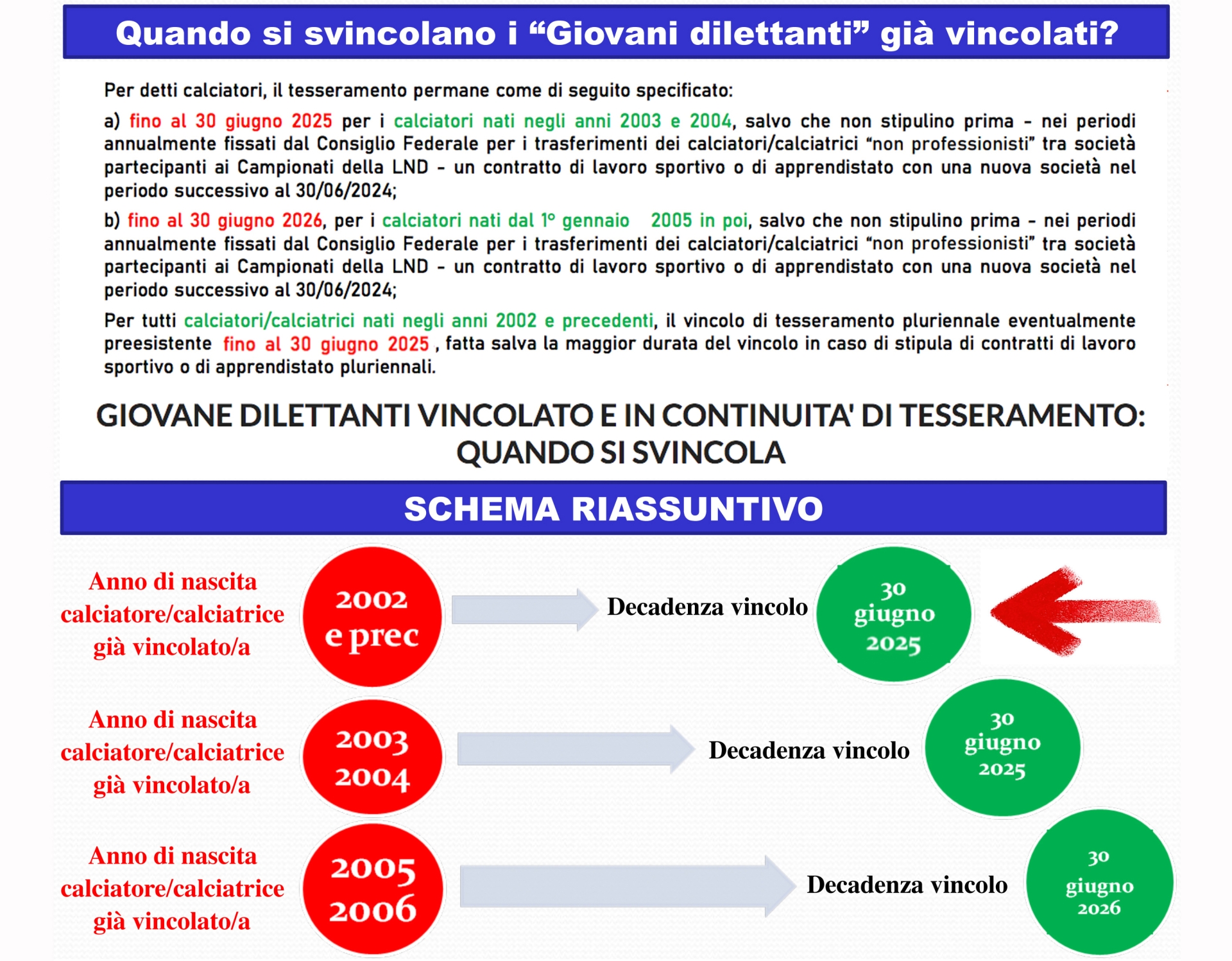 Le società sportive si erano già tutte attrezzate e allineate a quelle che, dal 1° luglio 2024, sarebbero state le nuove regole con l'abolizione del vincolo che avrebbe 'liberato' tutti i calciatori nati negli anni 2001 e 2002 al 30 giugno 2024 e in continuità di tesseramento all'1 luglio 2023 (ovvero che non avessero firmato nuovo tesseramento o fossero stati trasferiti a titolo definitivo dall'1 luglio 2023).