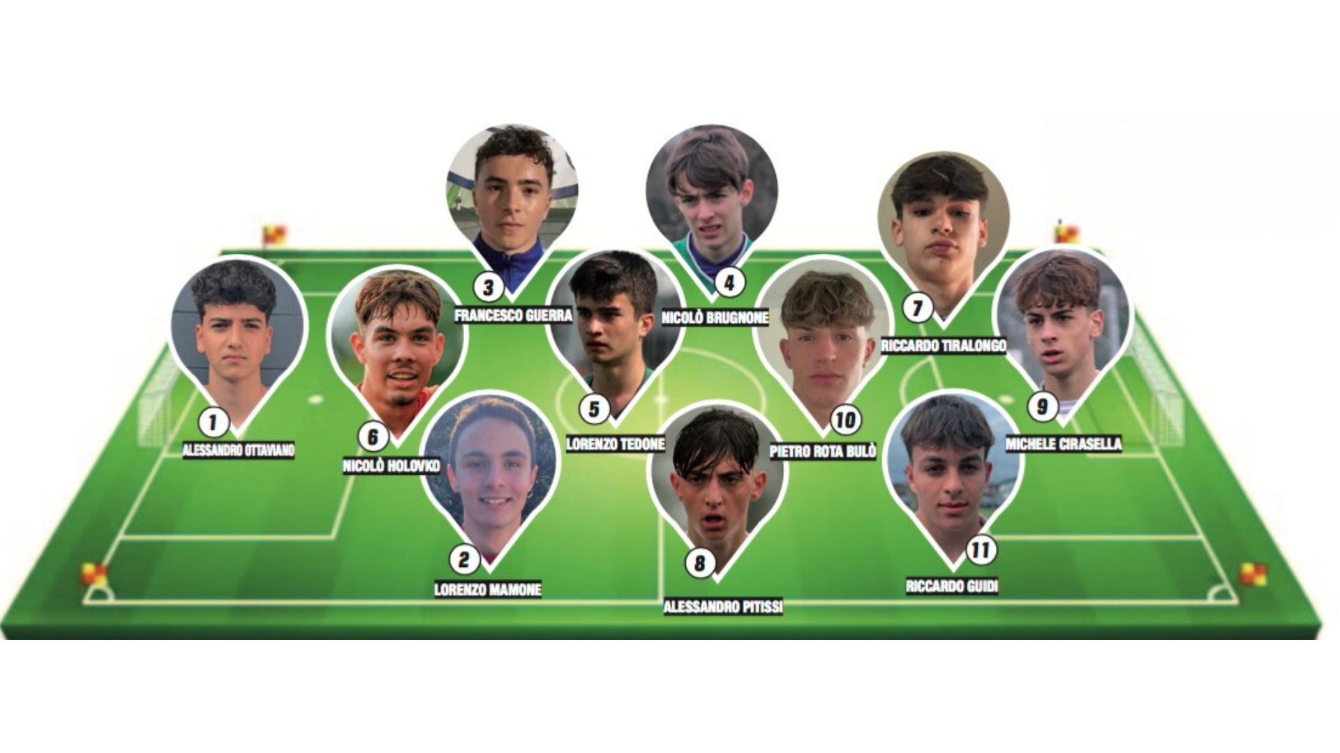 PIETRO ROTA BULÒ (Centrocampista, Villa Valle) • Un nome una garanzia. Rota Bulò è il centrocampista per eccellenza dei giallorossi, è il classe 2008 che non ha paura di accendere i riflettori su di sé grazie a giocate da far strabuzzare gli occhi. È il centrocampista che mira dritto in porta senza troppi pensieri: 20 reti in campionato ed un totale di 1565 minuti giocati. Se ne è accorta la grande rivale del Villa Valle nel bergamasco: nella prossima stagione il talento giallorosso passerà in forza alla Virtus.