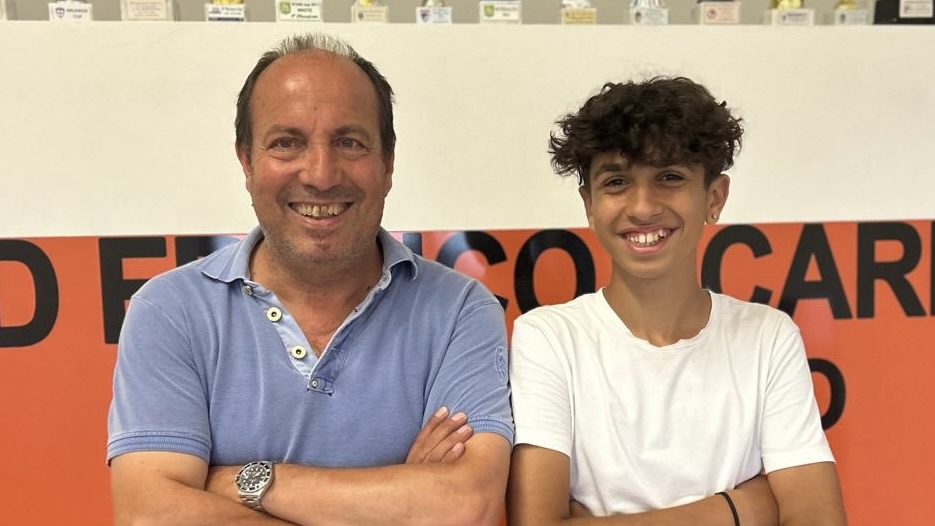 Il direttore sportivo Giuseppe Merlino con il nuovo acquisto Branchicella, classe 2011