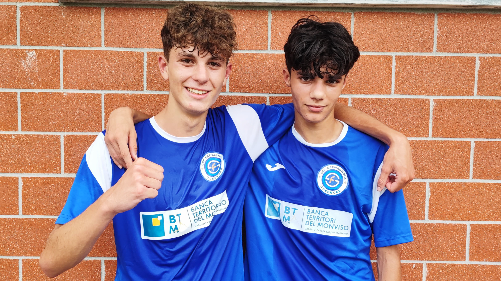 Federico Molino e Aabdaoui, il primo ha segnato il gol della vittoria per il Carmagnola contro il Vallorco, il secondo ha confezionato l'assist