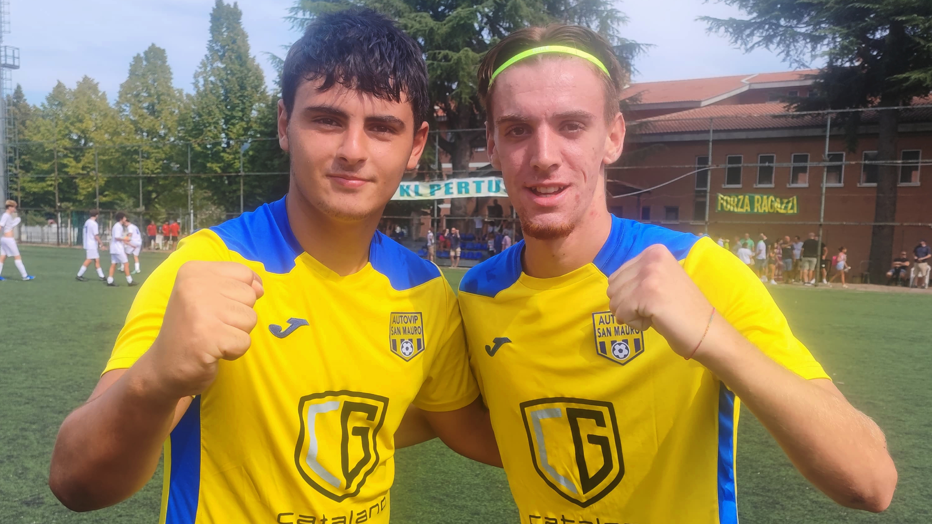 Andrea Beltino e Lorenzo Capasa, autori dei tre gol dell'Autovip San Mauro ai danni del San Giacomo Chieri