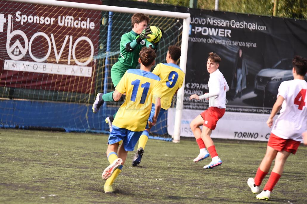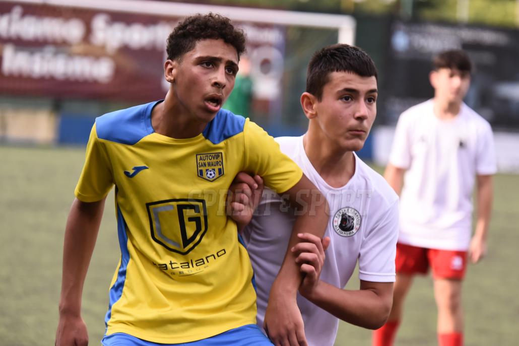 7 minuti di recupero nel primo tempo, causa un accenno di rissa tra i giocatori sedato dall'ingresso dei due allenatori in campo, in occasione del quale l'arbitro Matteo Cane di Chivasso estrae due cartellini rossi. Nella ripresa il 3-0 di Haroun Jebril su cross di Isac Tewoldemedhen e il rigore parato da Luca Tambaro allo specialista Federico Paroldo e tante azioni spettacolari come la rovesciata di Giovanni Puleo, sulla quale il portiere del San Mauro compie un altro grande intervento.
