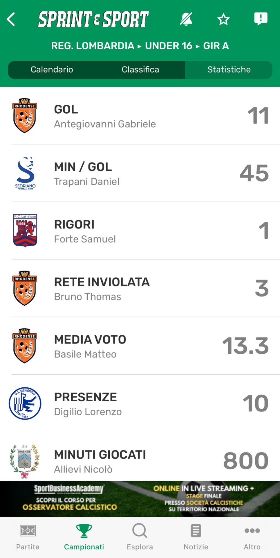 Scarica la nostra applicazione per vedere tutte le statistiche aggiornate del tuo girone!
