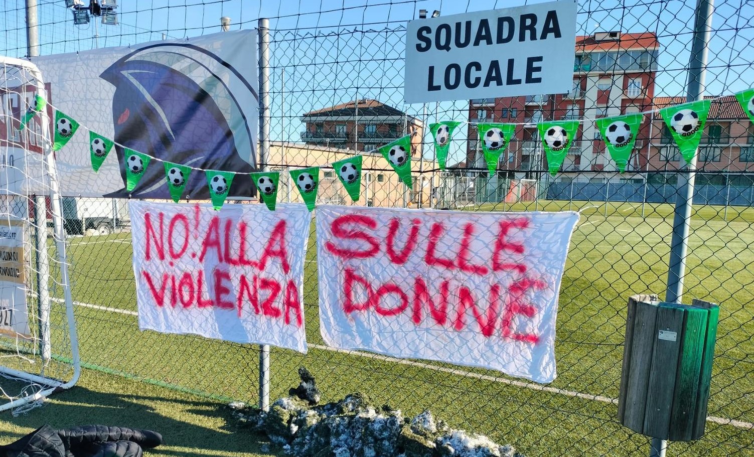 Una statistica che non può lasciare nessuno indifferente, soprattutto le nuove generazioni che devono essere sensibilizzate per un futuro migliore. L'opera di sensibilizzazione è stata portata avanti anche dalle società calcistiche che sin da sabato hanno voluto dare un forte calcio alla violenza, oltre ai calci ad un pallone. Capofila è il Borgo Vittoria, società torinese molto attiva e sensibile a questo tipo di iniziative, che nella mattinata di sabato 23 novembre ha dato spazio in via Paolo Veronese ad una manifestazione in collaborazione con l'associazione Terzo Tempo: l'evento, nato per sensibilizzare sui disturbi psicologici di giovanissimi che hanno bisogno di assistenza e aiuto in ambito sociale ed educativo, ha poi ampliato la sua eco parlando della lotta alla violenza sulle donne. Uno striscione affacciato sul campo grida "No! alla violenza sulle donne" e manda un messaggio forte e chiaro, per non dimenticare. E all'entrata del centro sportivo una panchina rossa che ricorda che è sempre il 25 novembre.