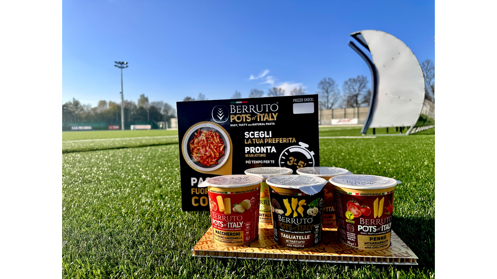 Sostenibilità e qualità: il calcio è anche green Oggi il gioco non si ferma al rettangolo verde: la sostenibilità sta conquistando anche il mondo dell’alimentazione. Pasta Berruto non dribbla l’attenzione all’ambiente, utilizzando packaging completamente riciclabili e grano duro italiano per le sue Pots. Perché vincere sì, ma senza compromettere il futuro!