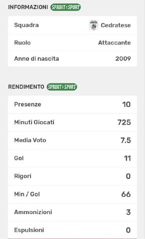 «Lo sport non costruisce la personalità, la rivela». Non esiste esclamazione migliore come quella del noto commentatore di football americano statunitense dei primi anni 60, Heywood Hale Broun, per riassumere la forza di volontà e soprattutto la voglia di riscatto che riecheggia nella testa della punta di diamante della Cedratese, Simone Biffardi. Dopo l'annata di due stagioni fa trascorsa al Como, la quale non è andata proprio come dalle aspettative del classe 2009, adesso il vento è cambiato d'intensità ma è sempre in direzione Cedrate come da prima del suo arrivo al Como, in cui inizia a calcare i primi passi all'interno del rettangolo verde all'età di 5 anni. Accantonati i ricordi, la differenza la fa il presente e per Simone il presente non è un dubbio ma un'assoluta certezza. Sì, perchè a suon di gol - ovvero 11 in 10 presenze condite da 4 assist - è considerato ormai l'arciere di Via Monte Santo, di una freddezza disarmante che fa sempre centro.