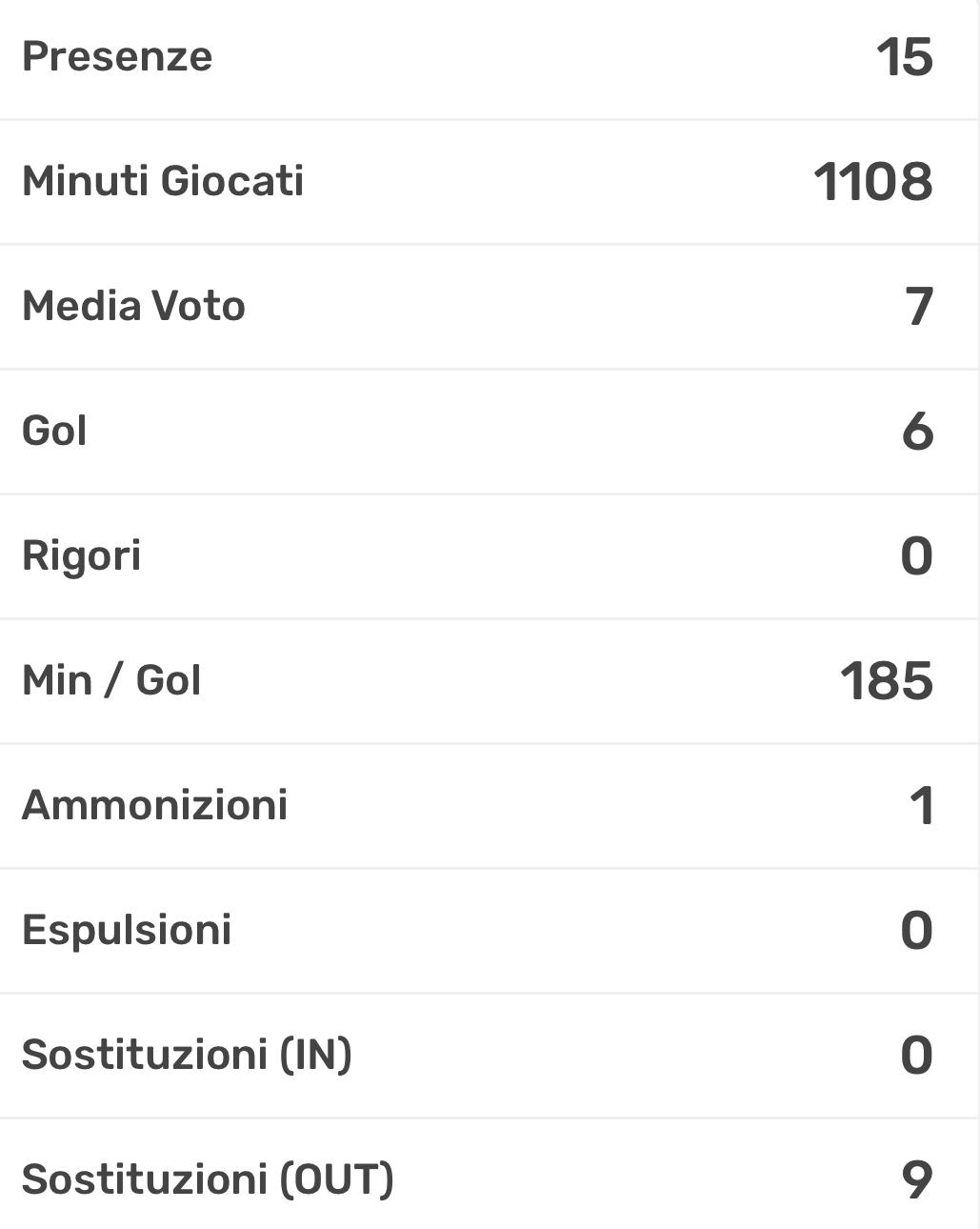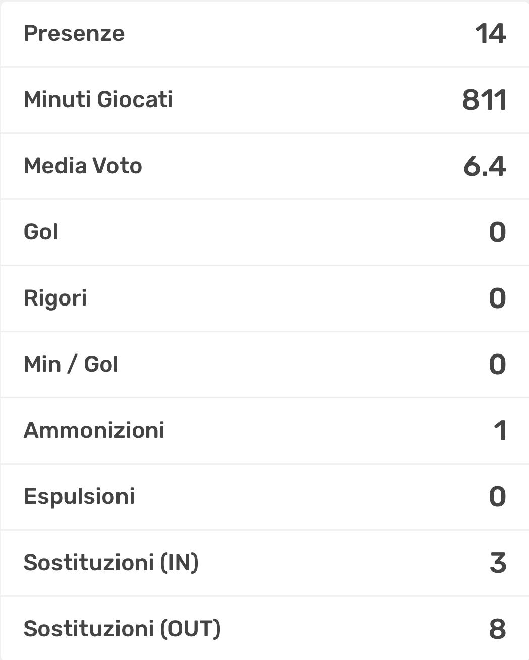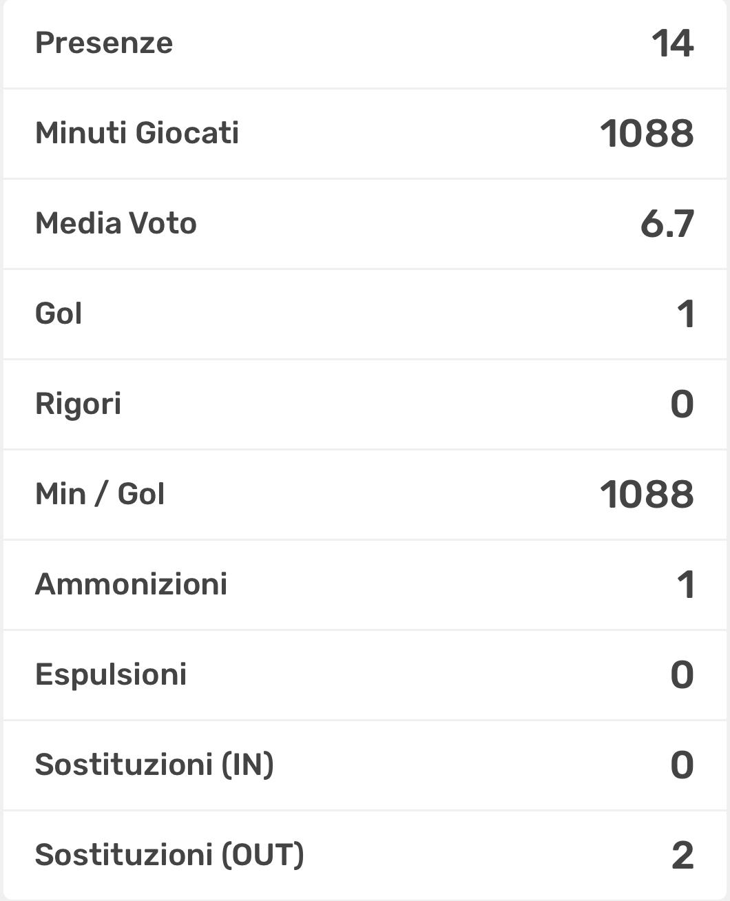 14 presenze, 811 minuti giocati, media voto del 6.6. Insomma la freccia di Roversi rappresenta al meglio il concetto di affidabilità. Chiamato a sostituire Parmiggiani (oramai sempre più fisso in Under 17 Élite). Nel girone di ritorno il suo obiettivo è trovare la via del gol (il numero recita ancora 0).