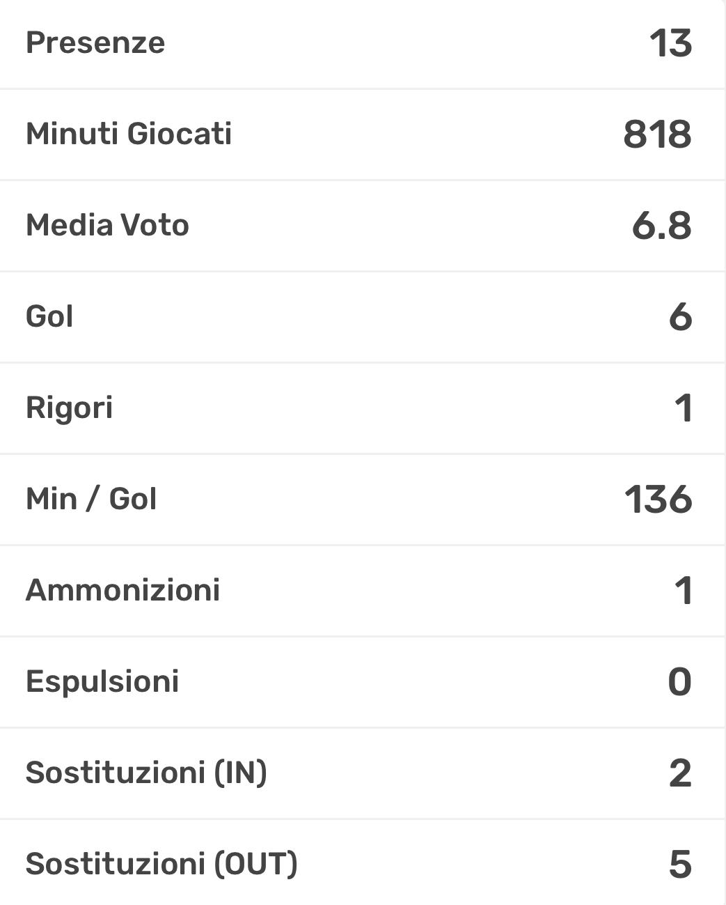 Un capitano a 360 gradi quello dei rossoblù: Segna da vero attaccante, ma poi si mette a lavorare insieme alla squadra dentro al campo. 8 gol sembrano pochi? Ed è proprio qui che si incappa nell'errore: per il lavoro che il classe 2009 offre ai compagni questi 8 gol valgono oro colato.