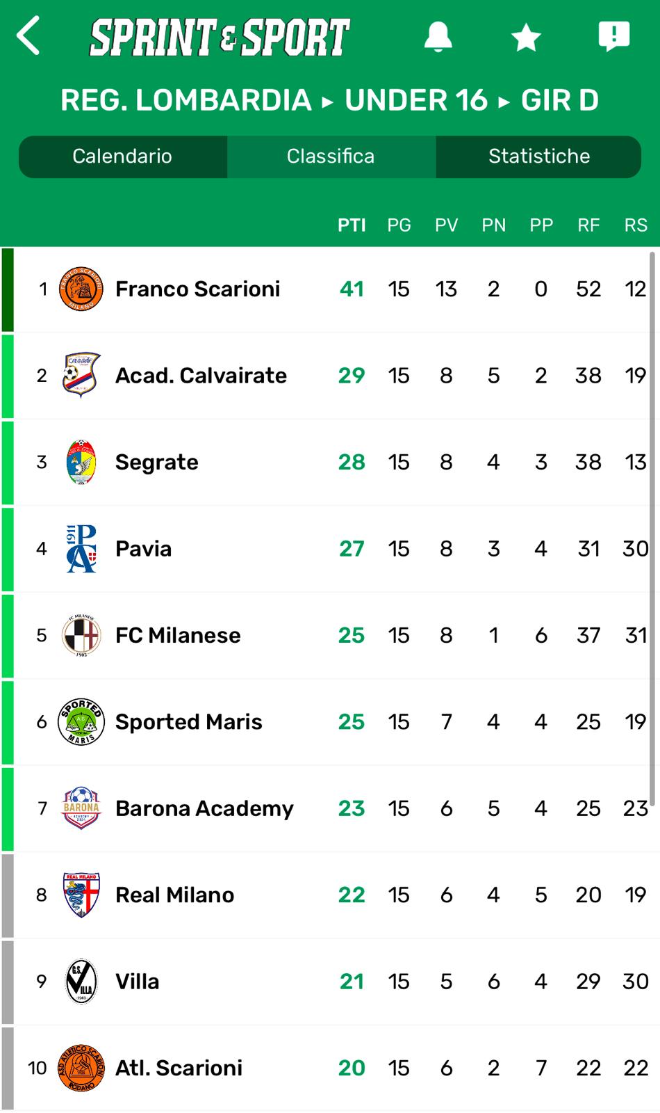 UNDER 16 GIRONE D • La top 11
