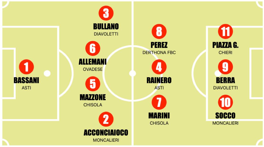 Una bella stagione fino ad ora per Ricardo Perez. Il centrocampista sa ricoprire più ruoli in mezzo al campo con il suo Derthona ma anche nella Rappresentativa, di cui fino ad ora è stato un punto fermo. Sa muoversi bene tra le linee ed è un giocatore insidioso dalla trequarti in poi grazie alle sue spiccate doti tecniche. Con 5 gol e 864 minuti giocati è tra i giocatori più impiegati da Lorenzo Ghio.