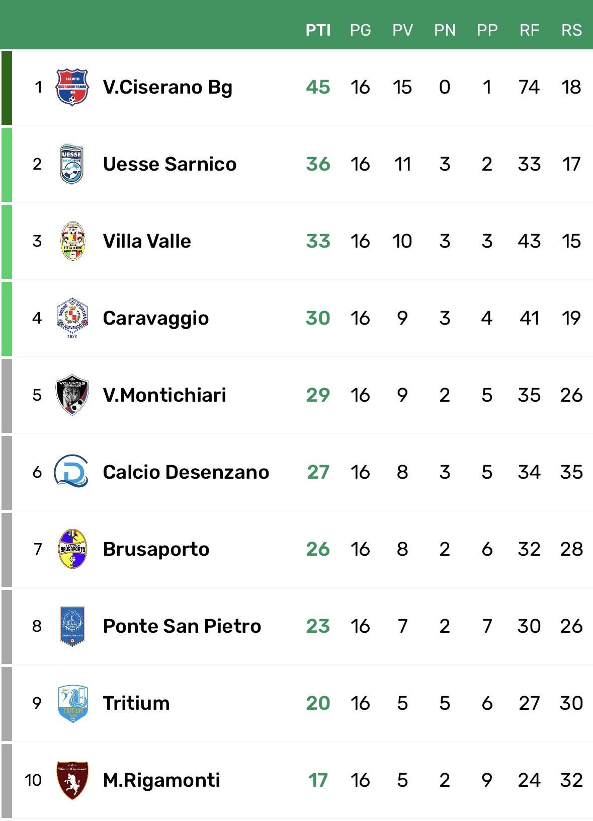 Iniziamo con i padroni di casa. Il Caravaggio si presenta a questo big match con due sconfitte nelle ultime due partite disputate. Una sconfitta per 2-1 nell'ultima partita del 2024, per mano del Crema (13° in classifica), e un sonoro 3-1 ad opera della Castellana (12°) la scorsa giornata; una partita che, come sottolineato da mister Nicola Rende, "non è mai stata messa in discussione". Insomma, se l'anno scorso era finito male quest'anno è cominciato peggio. Il big match della 17esima giornata può essere un punto importante da cui ripartire, vincendo si manderebbe sicuramente un messaggio a tutte le altre in corsa per la zona play-off: Caravaggio c'è.