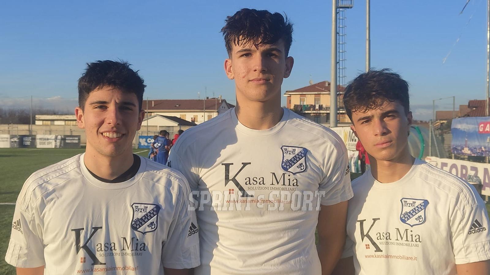 Jago Cordero, autore di una bella prestazione e di un assist, e i due marcatori Francesco Giuranna e Francesco Pomero nell'amichevole vinta 2-1 contro la Rappresentativa Piemonte Vda Under 15.
