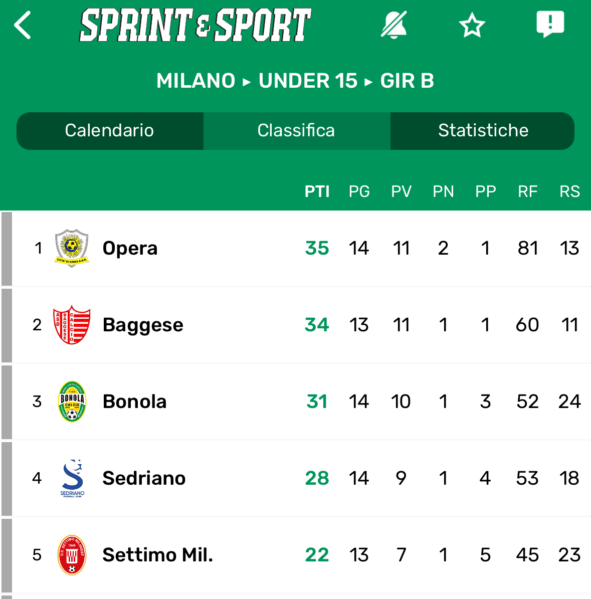 L'avvincente classifica del girone B di Under 15 la trovi solo sulla nostra app di Sprint e Sport