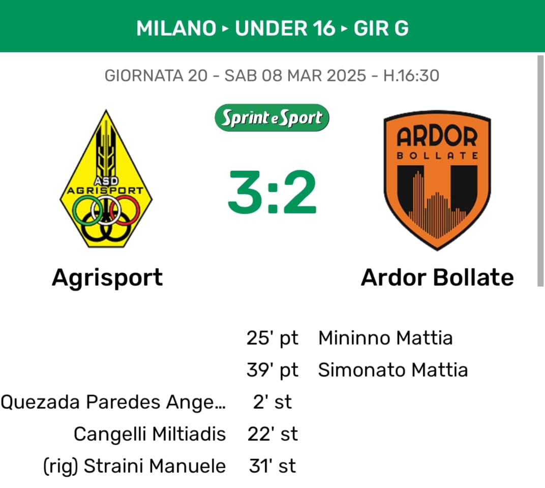 A partire da Manuele, centrocampista classe 2009 che con il suo Agrisport il sabato alle 16:30 affronta l'Ardor Bollate. E lo fa in una partita scomoda, scomodissima in cui la squadra di Andrea Summa si ritrova sotto 2-0 alla fine del primo tempo, poi ecco che nella ripresa accade l'impensabile. Perché i gialloblù prima la pareggiano e poi la ribaltano grazie al calcio di rigore siglato proprio da lui, proprio da Manuele Straini che certifica la terza e pazza vittoria consecutiva e il sorpasso in classifica proprio ai danni dell'Ardor. «È innegabile che stiamo vivendo un ottimo periodo - ammette Manuele - con tre belle vittorie. Questa con l'Ardor è stata molto pesante perché all'andata loro l'avevano vinta esattamente come abbiamo fatto noi, il rigore? non ho fatto altro se non incrociare forte il tiro, ho spiazzato il portiere ed è andata bene».