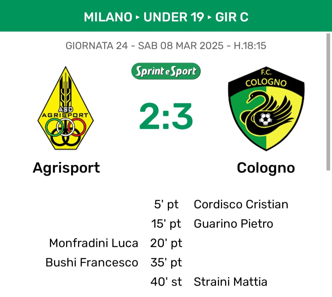 Poco dopo, sullo stesso campo, in quella stessa via Trasimeno, la Juniores dell'Agrisport affronta invece la capolista Cologno, capitanata da un classe 2007 il cui cognome ha fatto le fortune dei padroni di casa esattamente qualche minuto prima. Da quel Mattia Straini ormai bandiera dei gialloverdi, da quel giocatore che con la numero otto sulle spalle - la stessa che veste il fratello - diventato campione di Lombardia con la Rappresentativa di Milano meno di un anno fa e ora con la fascia al braccio nella squadra di tutta una vita. Da quel giocatore, la classica mezz'ala tignosa ma col vizio del gol, che a cinque minuti dalla fine firma un 3-2 vitale - che rende vana la rimonta di questo Agrisport - che tiene la squadra di Marco Silani in testa al Girone C a pari punti con l'Atletico Schiaffino. «È stato tutto molto veloce - dice Mattia - mi è arrivata la palla dopo un mezzo rimpallo e dal limite dell'area ho tirato d'esterno e ho fatto gol, mi hanno fatto pure male dal quanto forte mi sono saltati addosso per esultare (ride, ndr). La squadra sta andando bene quest'anno, abbiamo avuto un leggero tracollo in alcune partite dove ci siamo rilassati un pò troppo, ma quello che stiamo facendo è sotto gli occhi di tutti».