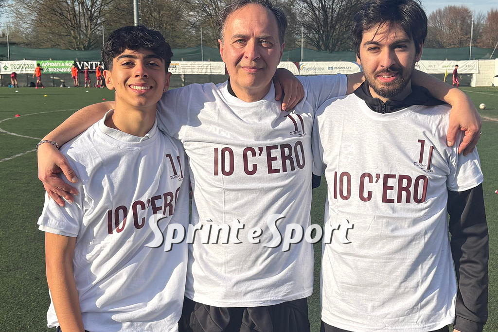 Il tecnico dell'Academy Vanchiglia, Fabio D'Anghela (al centro), con i figli Gabriele (a sinistra) ed Emanuele (a destra)