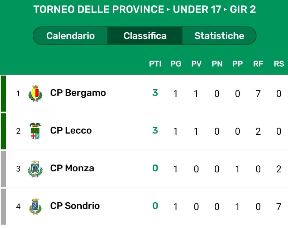 1ª giornata: LECCO-MONZA 2-1; BERGAMO-SONDRIO 6-0